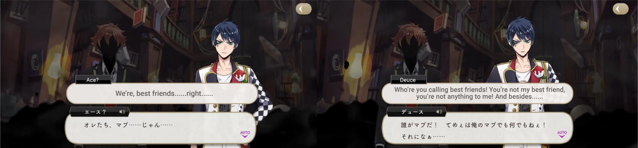 In Book 7 a dream-Ace refers to Deuce as his best friend using the same word that Deuce uses with the prefect, but Deuce rejects him. As this was not the real Ace it has not been counted.