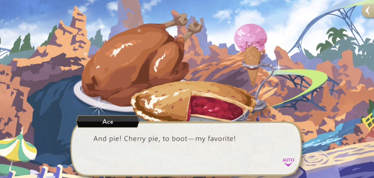 Ace’s Favorite Food and Why We have multiple examples of Ace declaring his love of cherry pie, but he has maybe never provided an explanation for why. When asked what his favorite food is in the main story Ace responds, “Probably cherry pie. Or hamburgers.” Cater Top Deuce