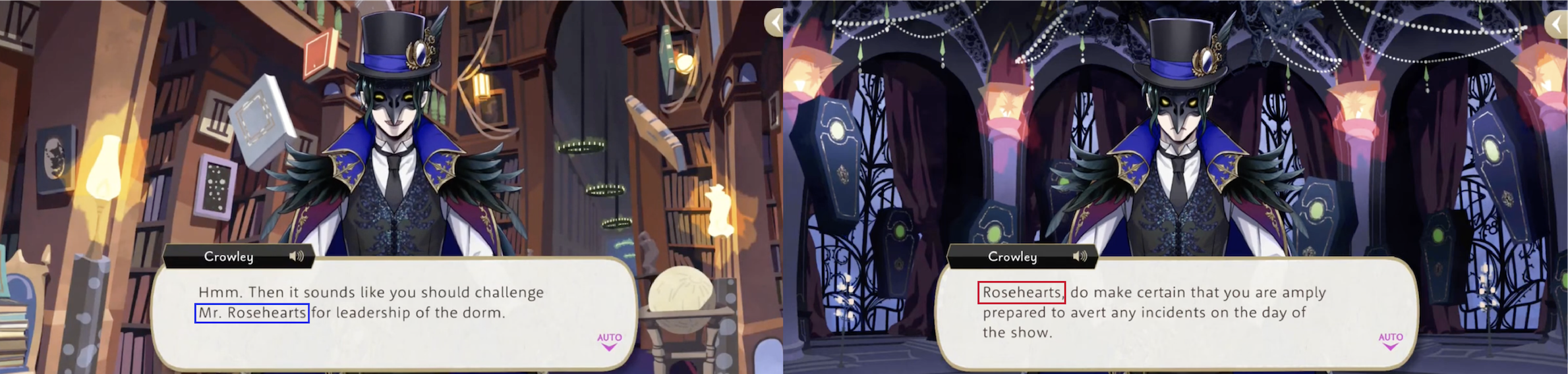 The English-language anime has Crowley using “Mr.” as an equivalent to his “-kun” honorific, which the English-language manga also did up until volume four and the English-language game did until Book 3, where it was dropped. It will be interesting to see if the anime upholds the honorific through to the end or similarly drops it midway.
