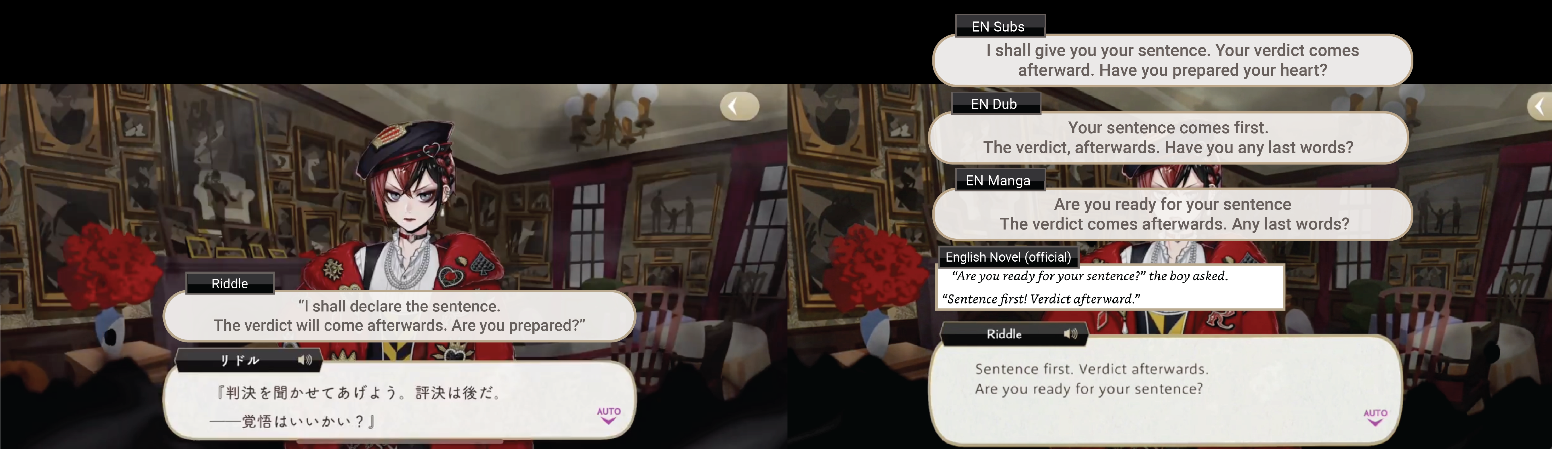 EN Anime Dub Riddle: Your sentence comes first. The verdict, afterwards. Have you any last words?