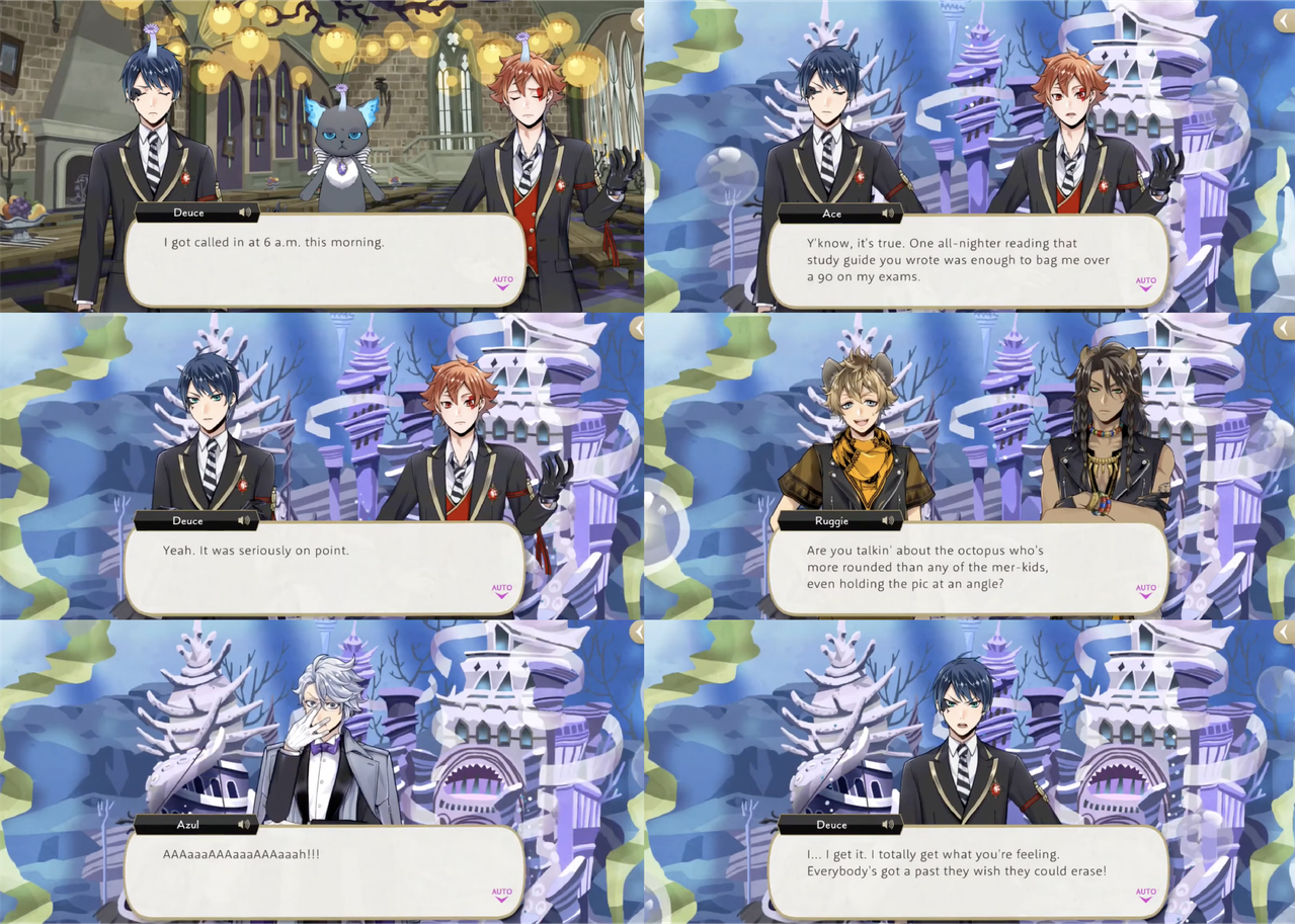 At the end of the story, however, when the characters are shown a photo from Azul’s childhood that he does not wish others to see, Deuce emphasizes with Azul, saying, “I totally get what you’re feeling. Everybody’s got a past they wish they could erase! I saw nothing! Neither did the rest of you, okay?! Never speak of this again!”