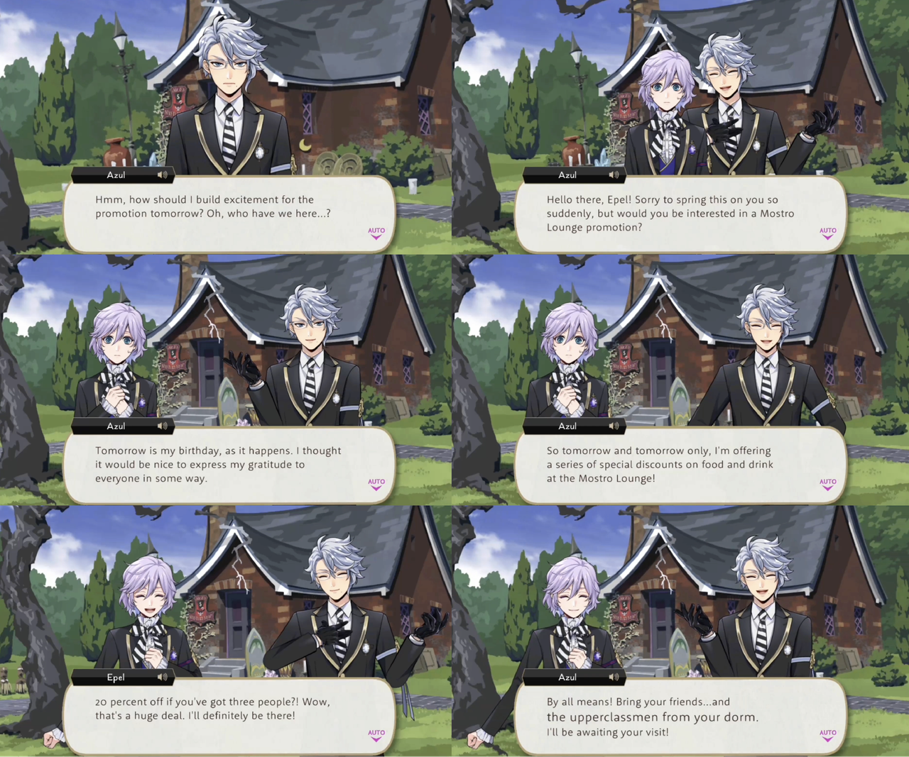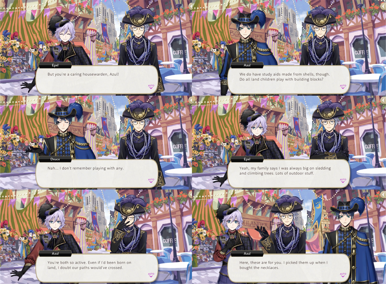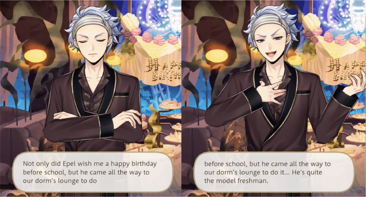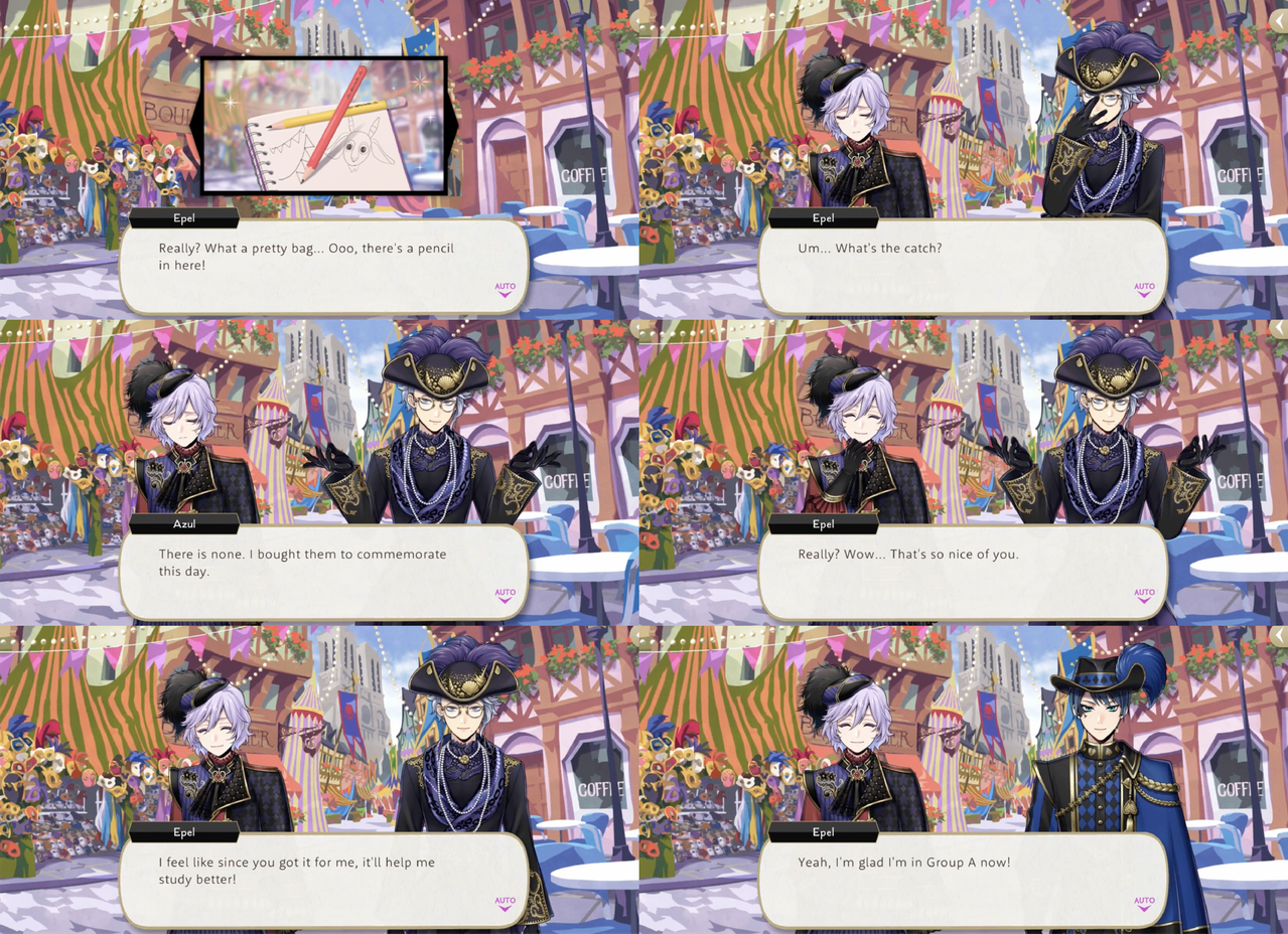 Meeting Epel by chance the day before his birthday, Azul invites him to Mostro Lounge for a special promotion. Epel says, “I’ll definitely be there!,” and Azul encourages him to bring his friends, with special emphasis on “the upperclassmen from (his) dorm.”