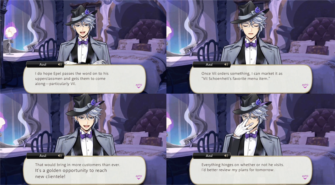 Later, it is revealed that Azul is possibly trying to use Epel to gain access to Vil: “Once Vil orders something, I can market it as ‘Vil Schoenheit’s favorite menu item.’ That would bring in more customers than ever. It’s a golden opportunity to reach new clientele!”