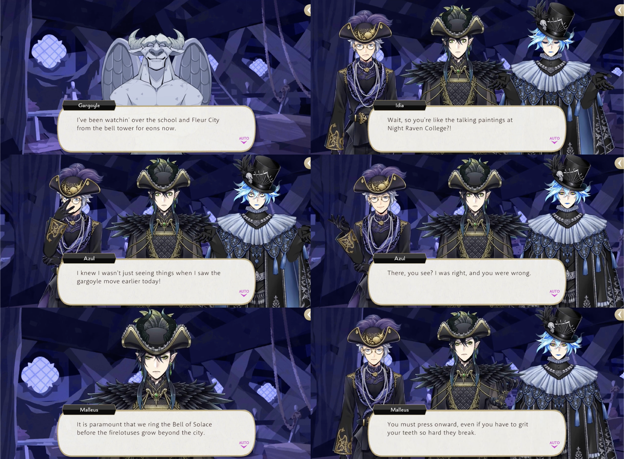 Early on in the Glorious Masquerade event Azul believes he sees a gargoyle physically move on its own, earning him mockery from both Malleus (“You must be sorely exhausted from the climb up here. You should take a long rest.”) and Idia (“Are you sure you’re not delirious, Azul?”).