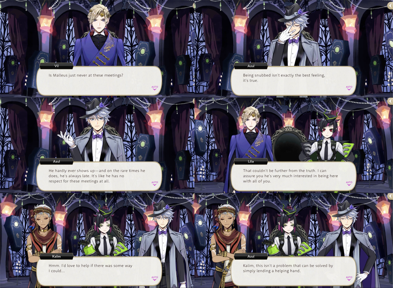 Much like Vil, Riddle, Leona and Idia, Azul expresses displeasure at how Malleus can never manage to attend housewarden meetings: “Being snubbed isn’t exactly the best feeling, it’s true. He hardly ever shows up-and on the rare times he does, he’s always late. It’s like he has no respect for these meetings at all.”