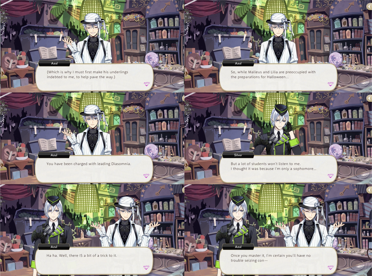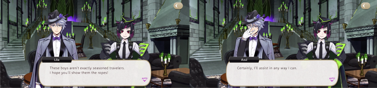 Prior to Glorious Masquerade Lilia tells Azul that Malleus, Sebek and Silver “aren’t exactly seasoned travelers. I hope you’ll show them the ropes!” Azul responds, “I’ll assist in any way I can.”
