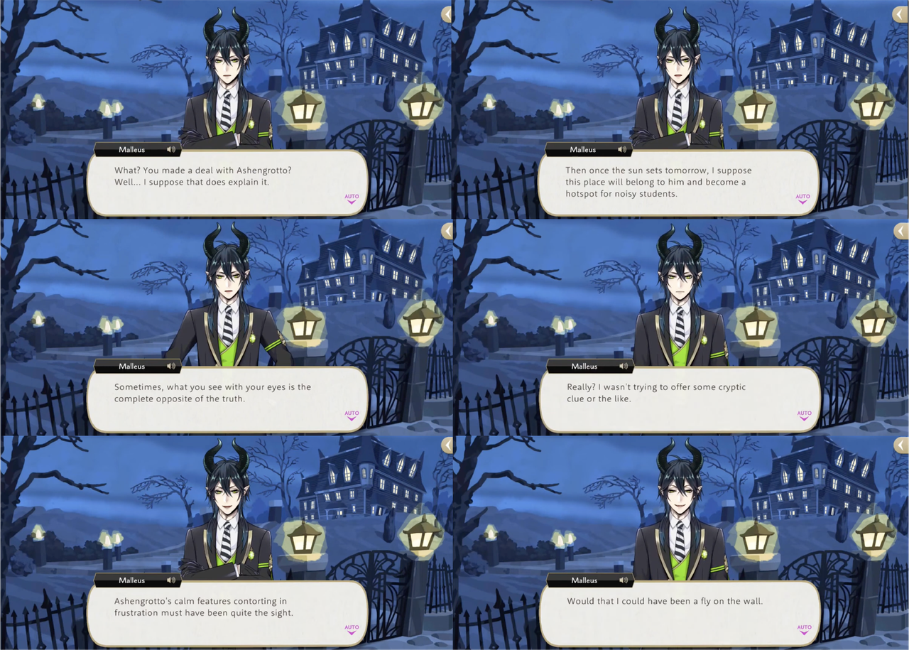 Upon learning that the prefect succeeded in taking back Ramshackle Malleus says, “Ashengrotto’s calm features contorting in frustration must have been quite the sight. Would that I could have been a fly on the wall.”