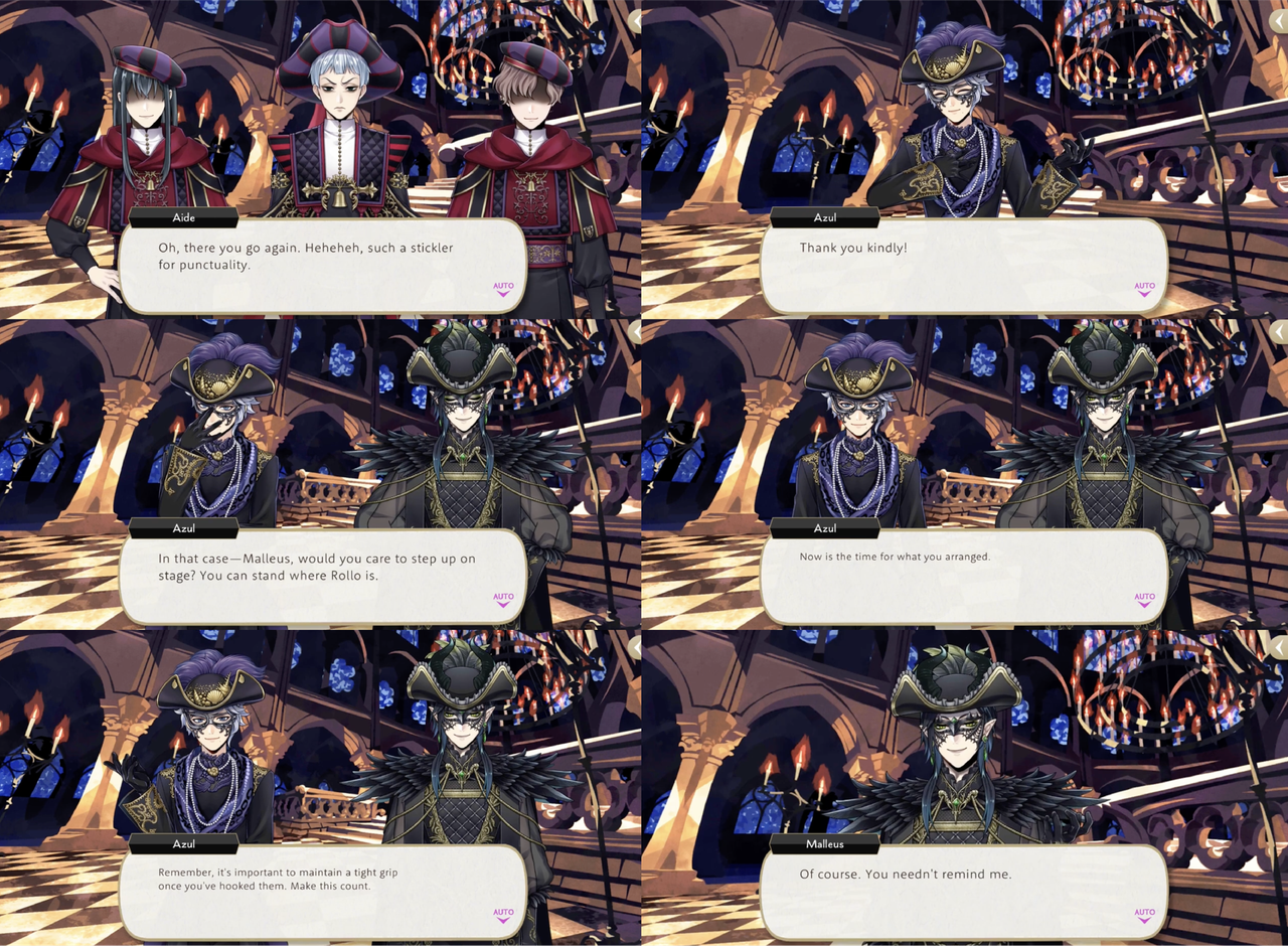 It is Azul who approaches Rollo at the start of the social to set the stage for their performance, telling Malleus where to stand and, “Remember, it’s important to maintain a tight grip once you’ve hooked them. Make this count.”
