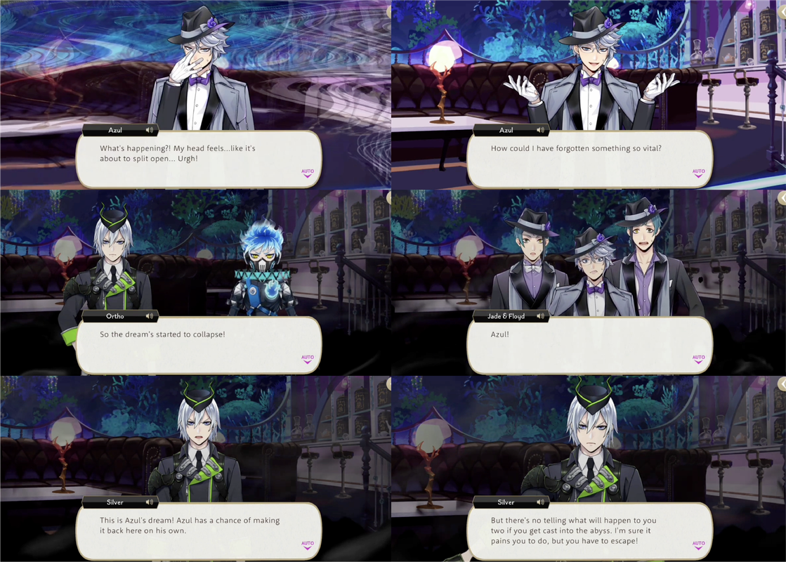 The dream begins to collapse and Jade and Floyd this time try to save Azul, but Silver tells them they need to let him go, as there is no telling what may happen to them if they remain but Azul will be able to return on his own, as it is his dream.