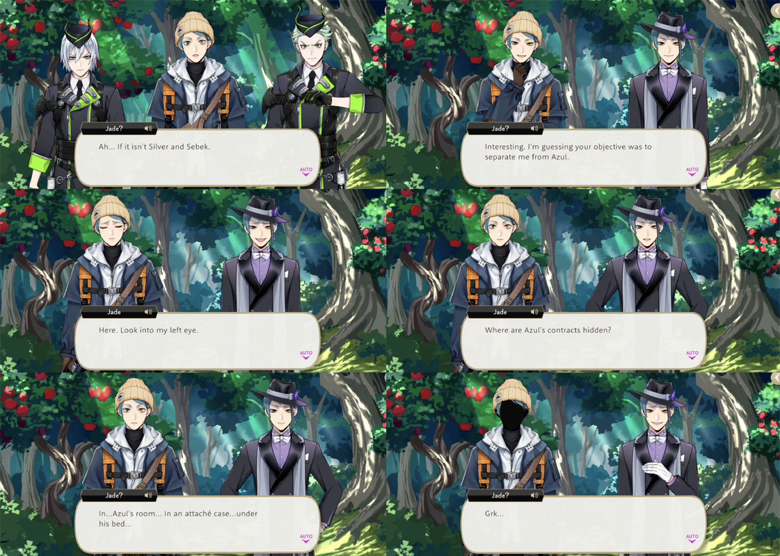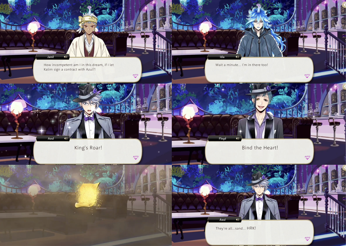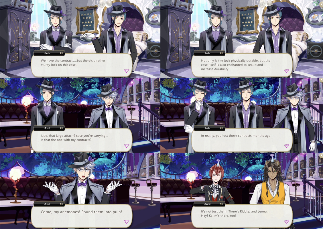 They successfully tempt dream-Jade into leaving the lounge and following them outside, where he is ambushed by Sebek, Silver and the real Jade, who uses his unique magic on the dream version of himself to learn where it is that Azul has moved his contracts, and then gets rid of his darkness doppleganger.