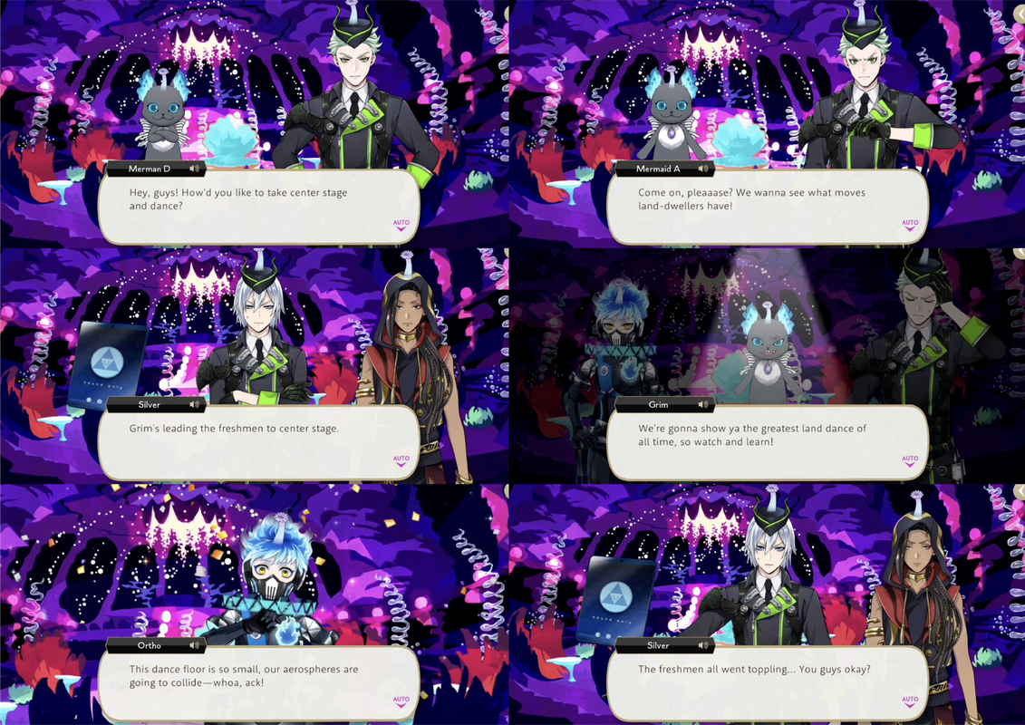 Unseen mermaids encourage them to dance center stage, and when they fall all over each other everyone begins to laugh. It is revealed that Azul had set the group up to humiliate them, including lying to them about the anemones.