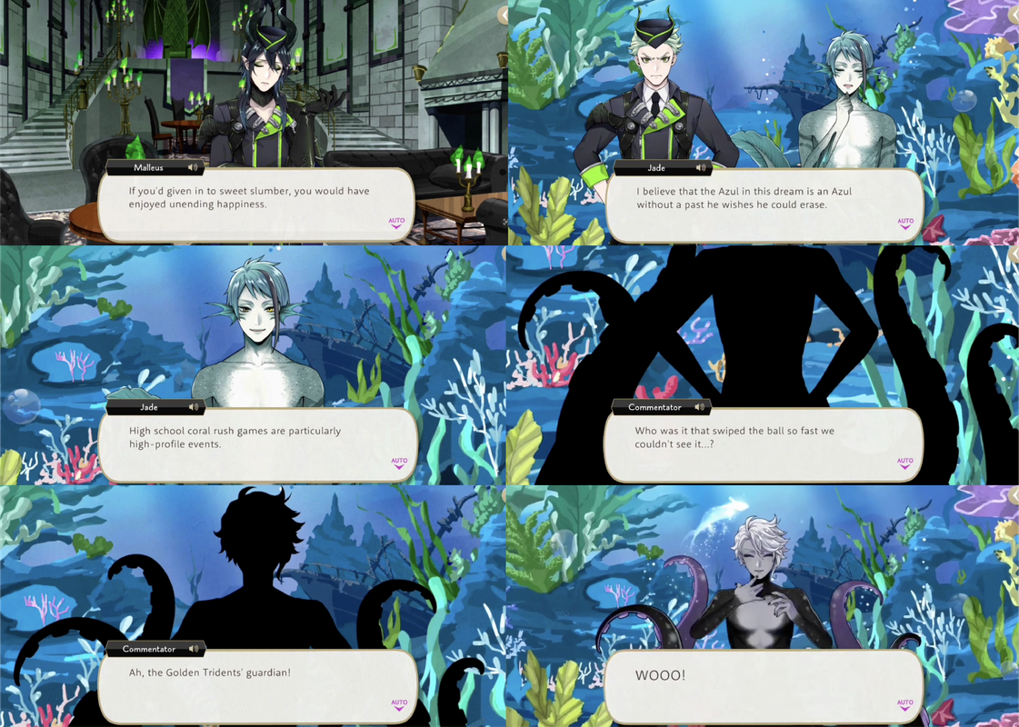 Malleus sends all of Sage’s Island to sleep in Book 7 so that they might enjoy “unending happiness,” and for Azul this seems to manifest as a dream world where he is a popular and successful spelldrive high school athlete without a past that he wishes to erase.
