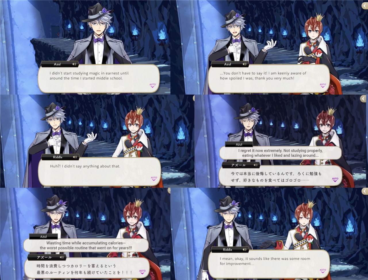 Azul tell Riddle directly of his regrets about “eating whatever (he) liked” prior to NRC (“Wasting time while accumulating calories”), and Floyd says that Azul “only ever picks at his food these days,” and that he should eat more.