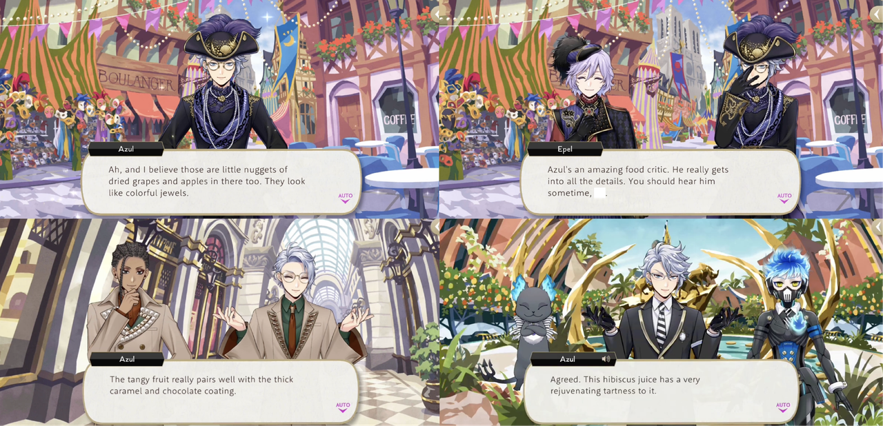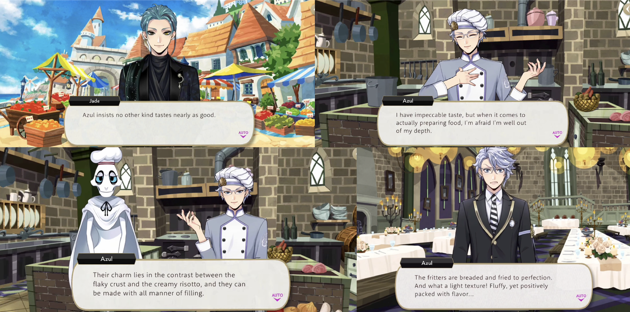 Azul describing food is a common theme (Jamil: “Must you be so hyperbolic?”), seen in Master Chef, Glorious Masquerade, Tapis Rouge, and Book 7.