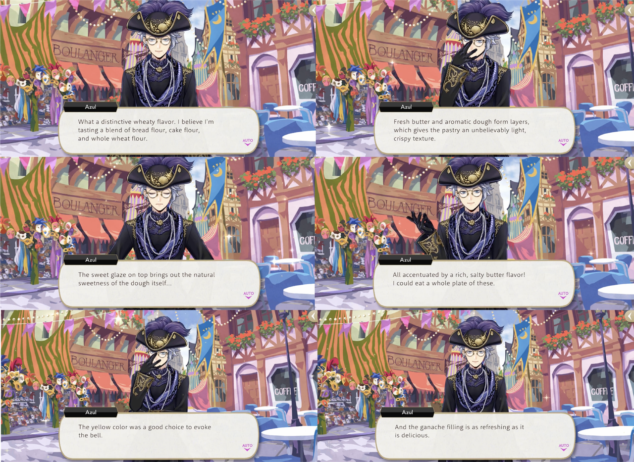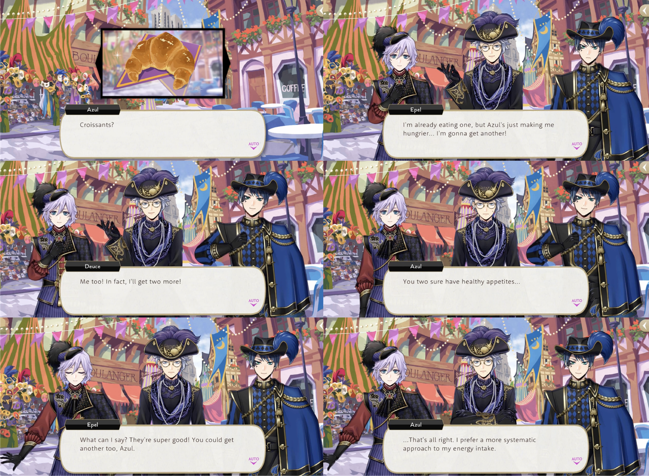 Azul does eat a croissant during the Glorious Masquerade event, but whereas Epel and Deuce go back for seconds and thirds, he refuses (“I prefer a more systematic approach to my energy intake”).