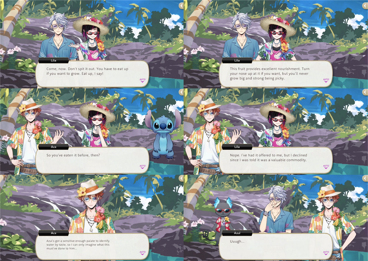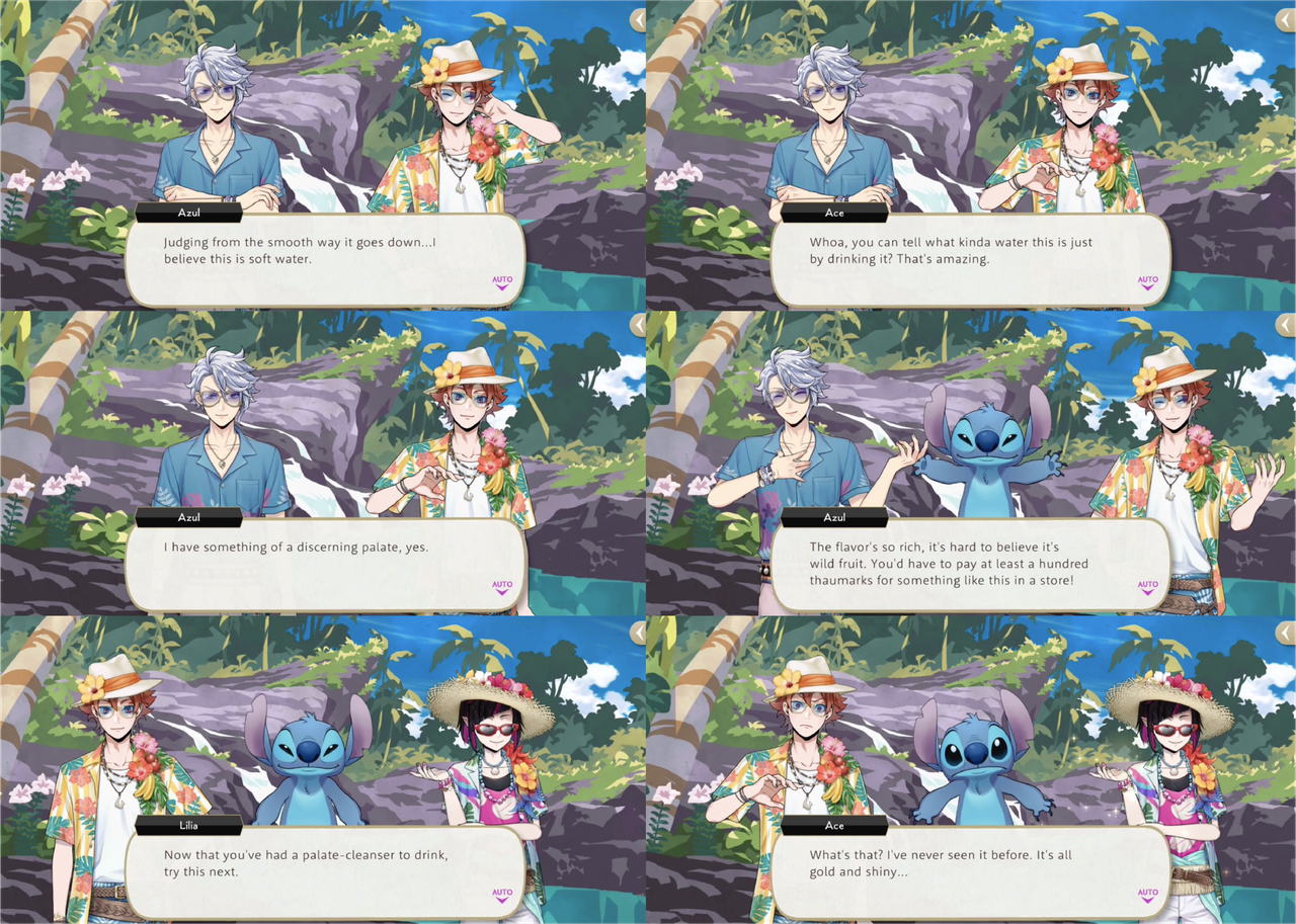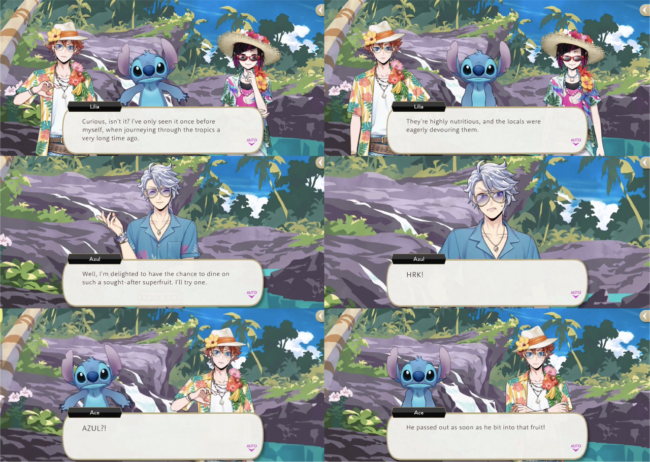 Azul impresses Ace with his “discerning palate” during the Stitch event, and when Lilia presents him with a “gold and shiny” fruit that he describes as “highly nutritious” Azul declares he is “delighted to have the chance to dine on such a sought-after superfruit.”