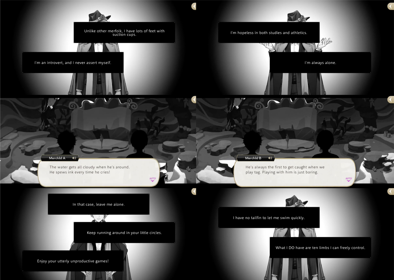 Azul reflects on how he did not belong with other mermaids, he was an octopus (“unlike other merfolk”) and he was an introvert who never asserted himself.