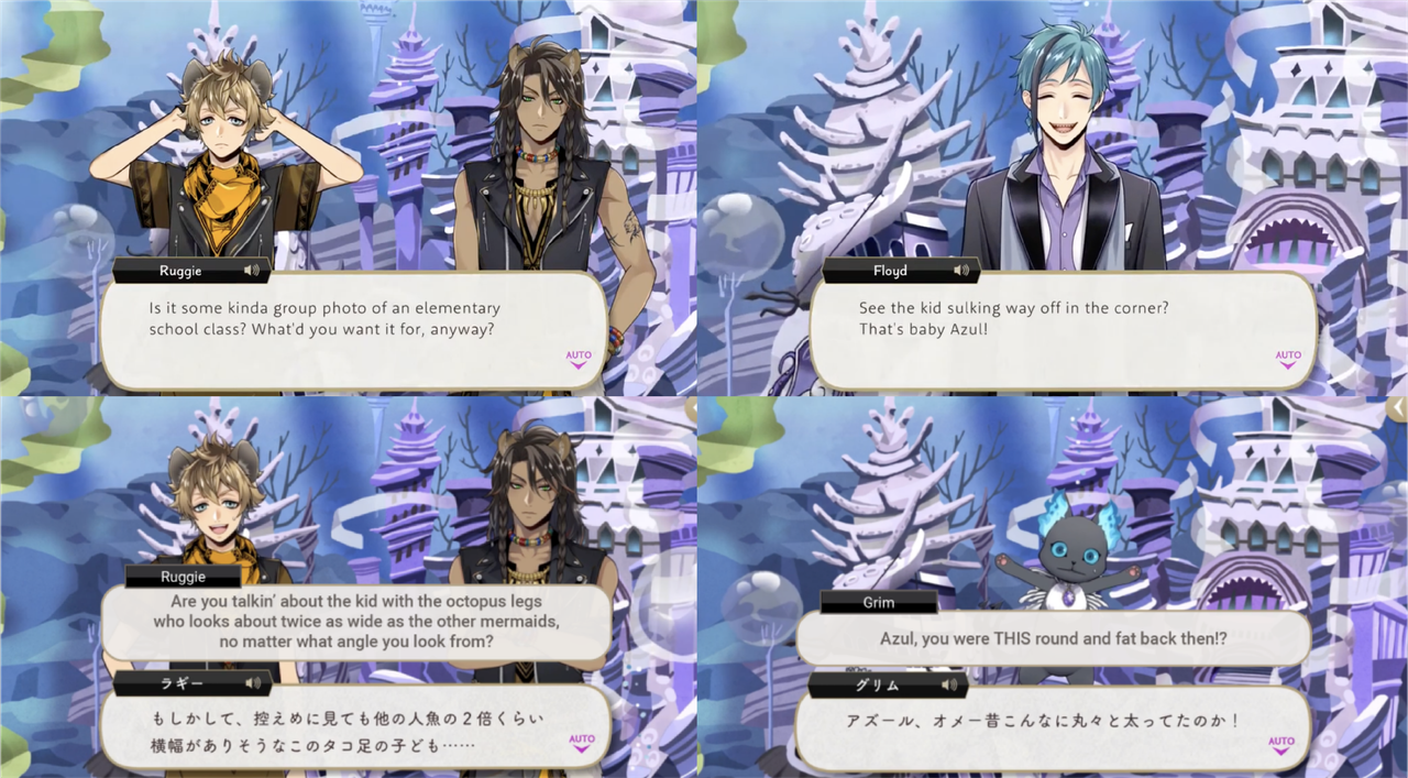 In a photo from Azul’s childhood, Ruggie describes Azul as “twice as wide” as other children in his class, while Grim says, “Azul, you were THIS round and fat back then!?”