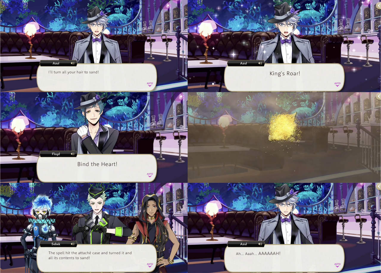 Azul summons his anemone’d servants to fight the group, ultimately attacking them with Leona’s stolen unique magic, which Floyd uses to destroy Azul’s contracts in the same manner as Book 3, successfully awakening Azul.