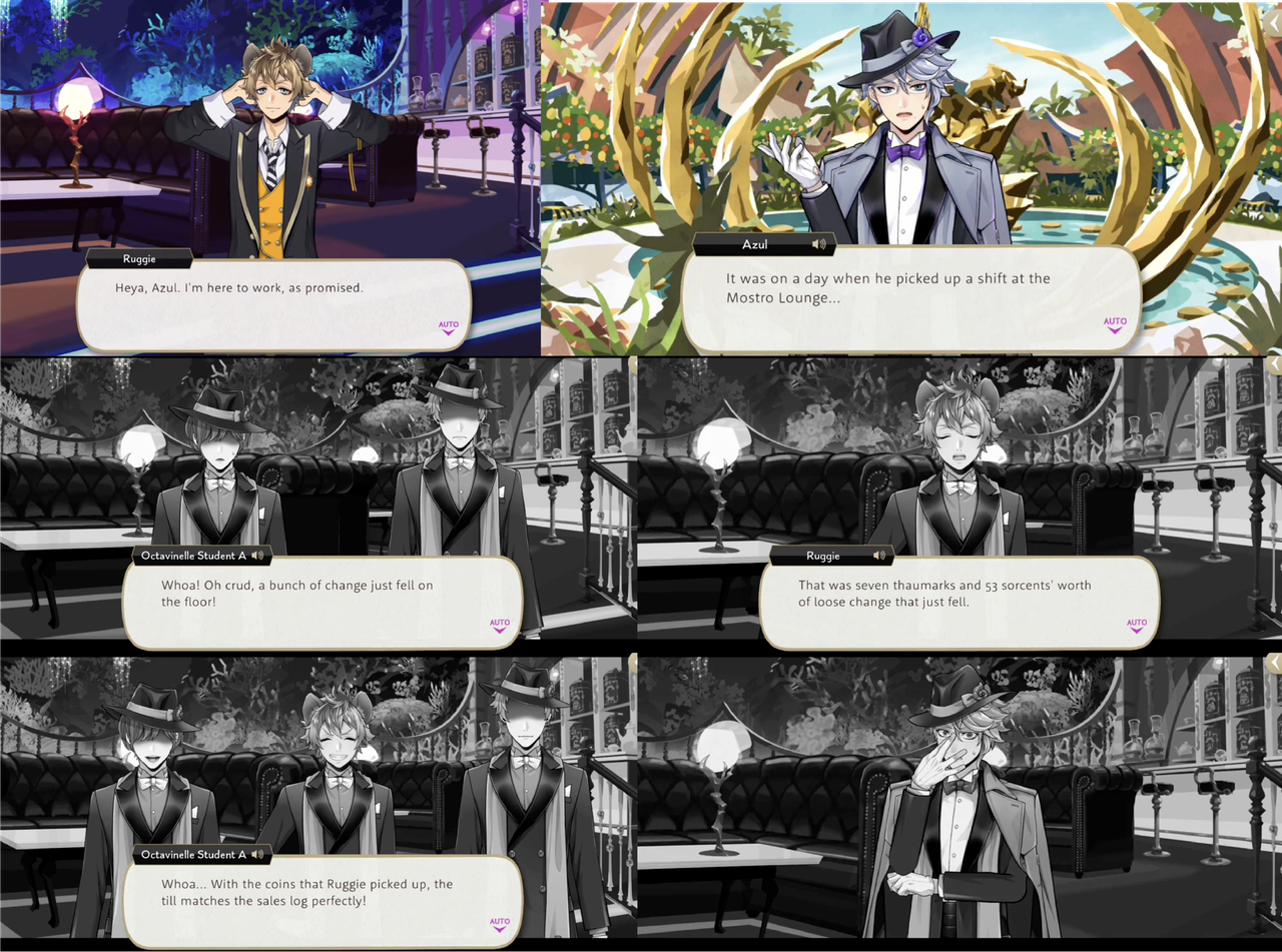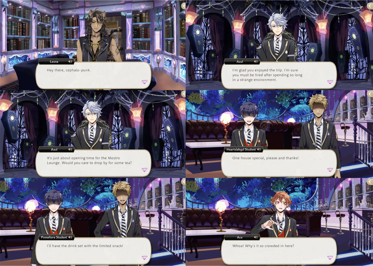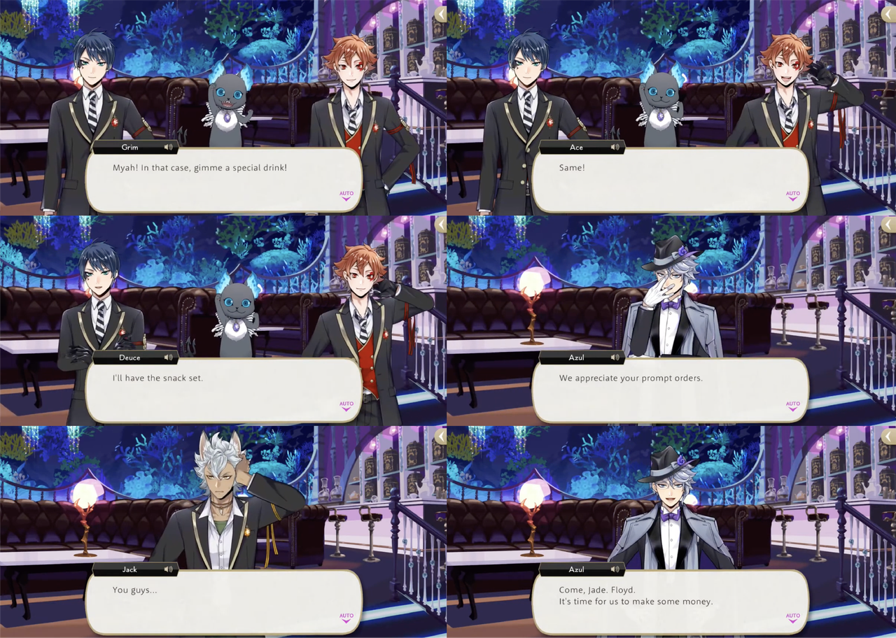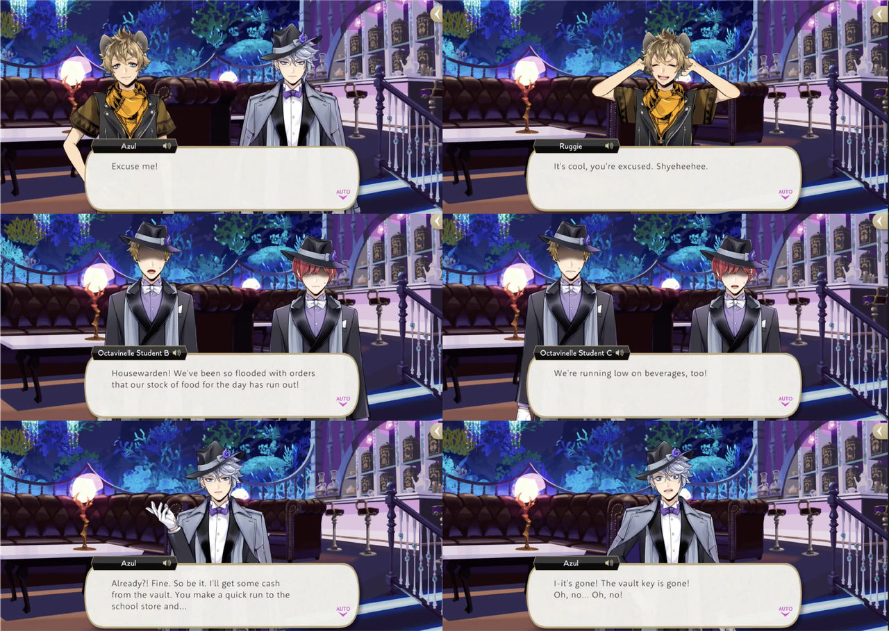 In Book 3 Mostro Lounge is incorporated into a plot to steal Azul’s contracts, with rowdy Savanaclaw students luring Azul out of the VIP room by buying out the lounge’s stock and causing enough disarray to distract him while Ruggie stole his vault key.