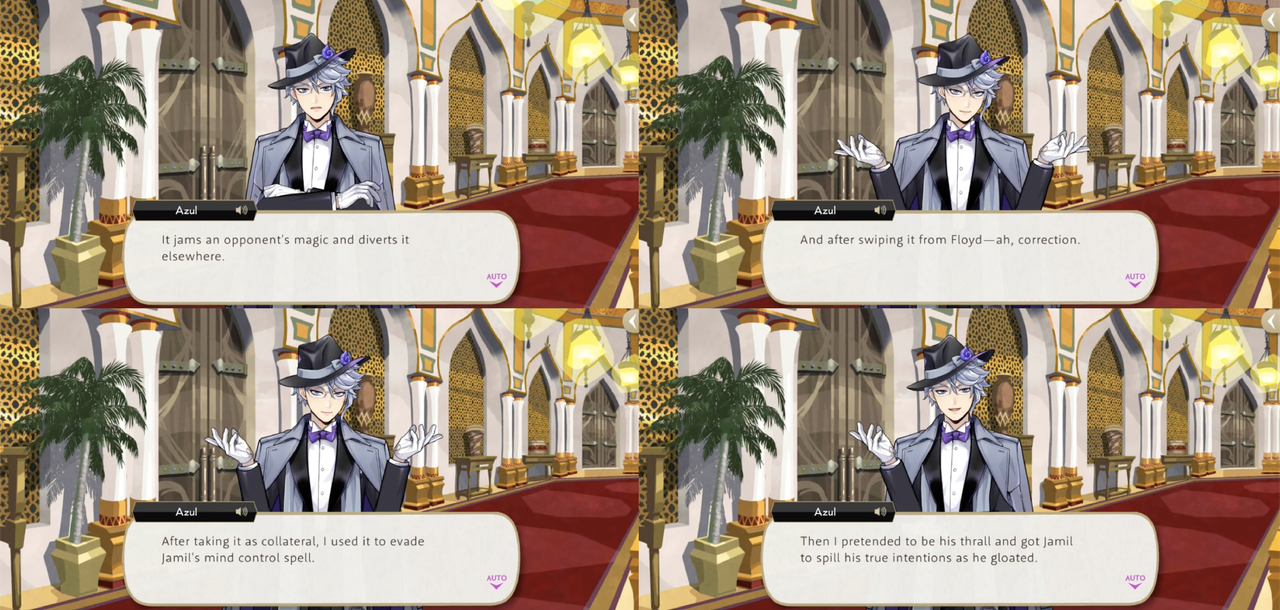 Jade says that Azul is conferred fit to be housewarden of Octavinelle for being “a quick thinker and a farsighted planner,” and Azul planning things far in advance is a common theme throughout the game.