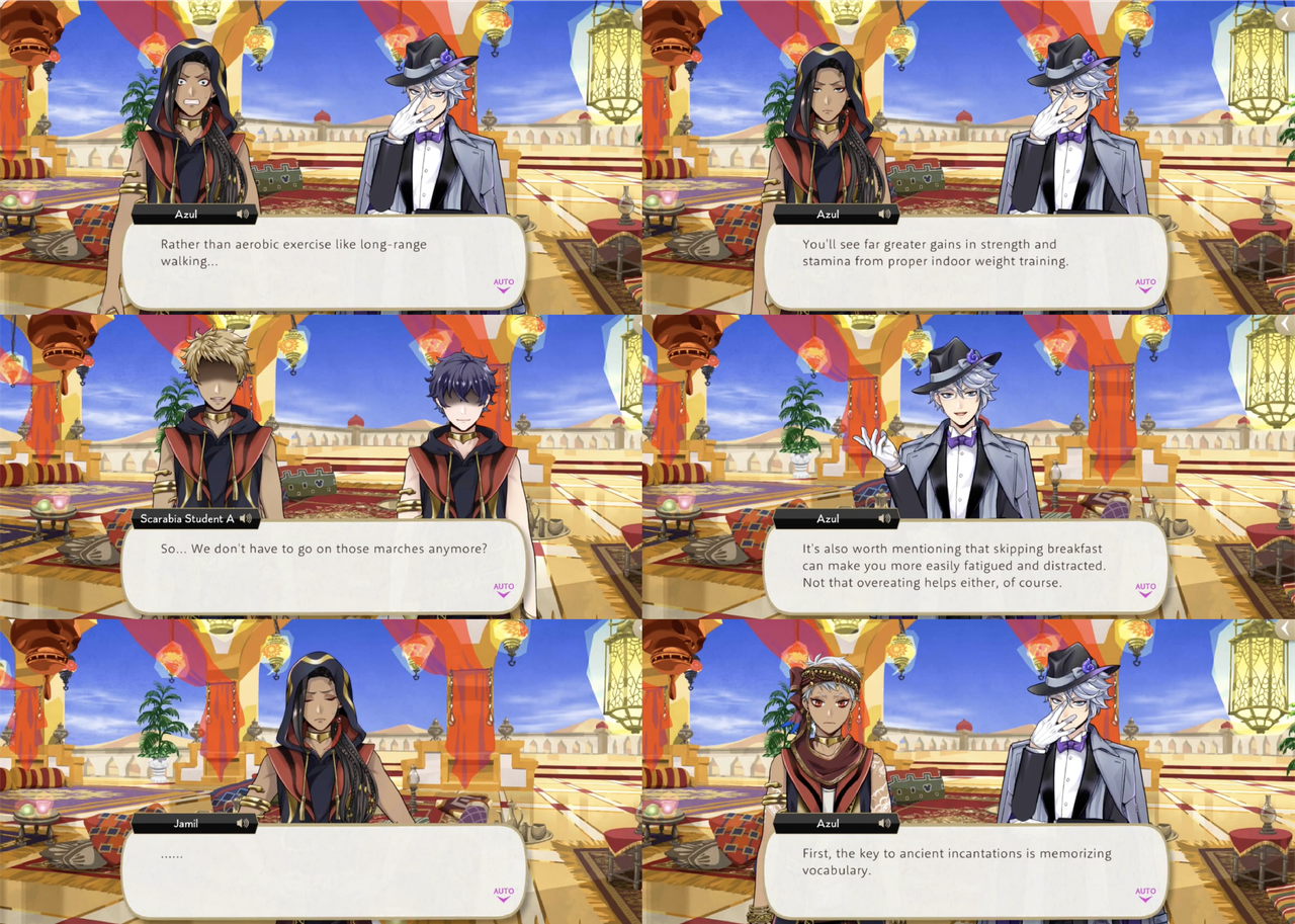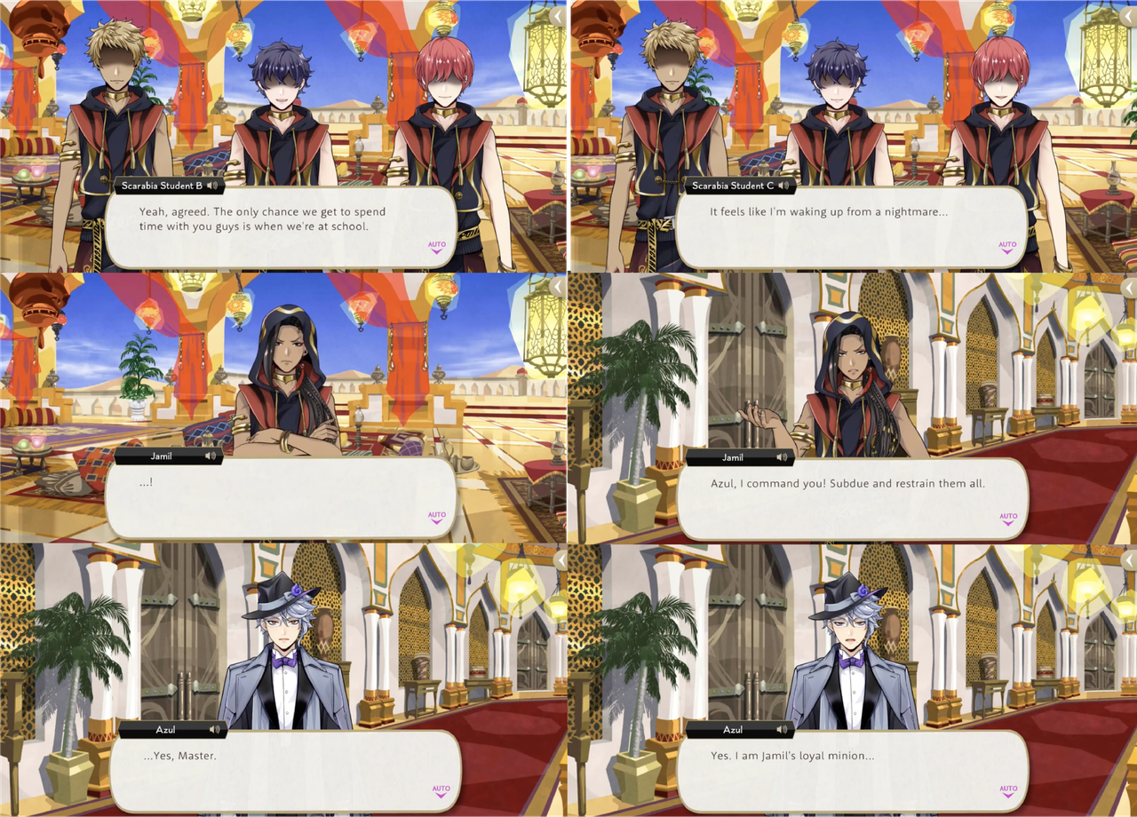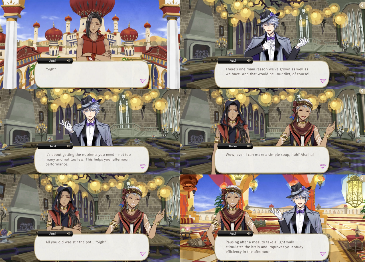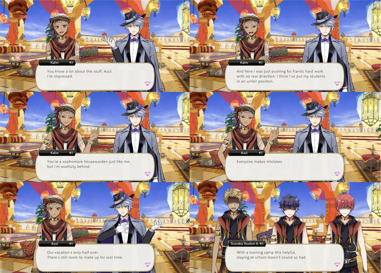 It is Azul’s plan that takes down Jamil in Book 4: using his position as Housewarden to override Jamil’s plot (“I’ve given my fellow housewarden Kalim an alternate proposal”), he improves upon the training camp that Jamil-via-Kalim had instituted, encourages a disheartened Kalim, and creates a study/practical magic/cooking curriculum that has the students of Scarabia dorm enjoying the activities that had been meant to overwhelm them into ousting Kalim from his position.