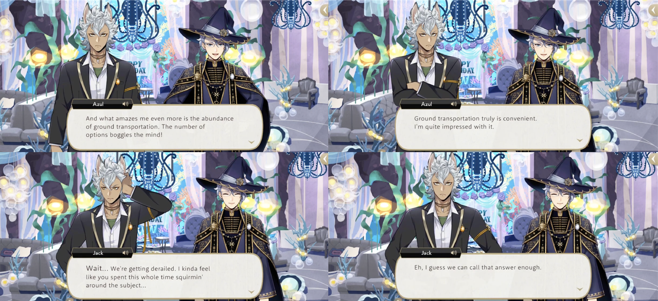 At the end Jack reflects, “We’re getting derailed. I kinda feel like you spent this whole time squirmin’ around the subject…Eh, I guess we can call that answer enough,” which was possibly Azul’s plan for dealing with the unfavorable topic.