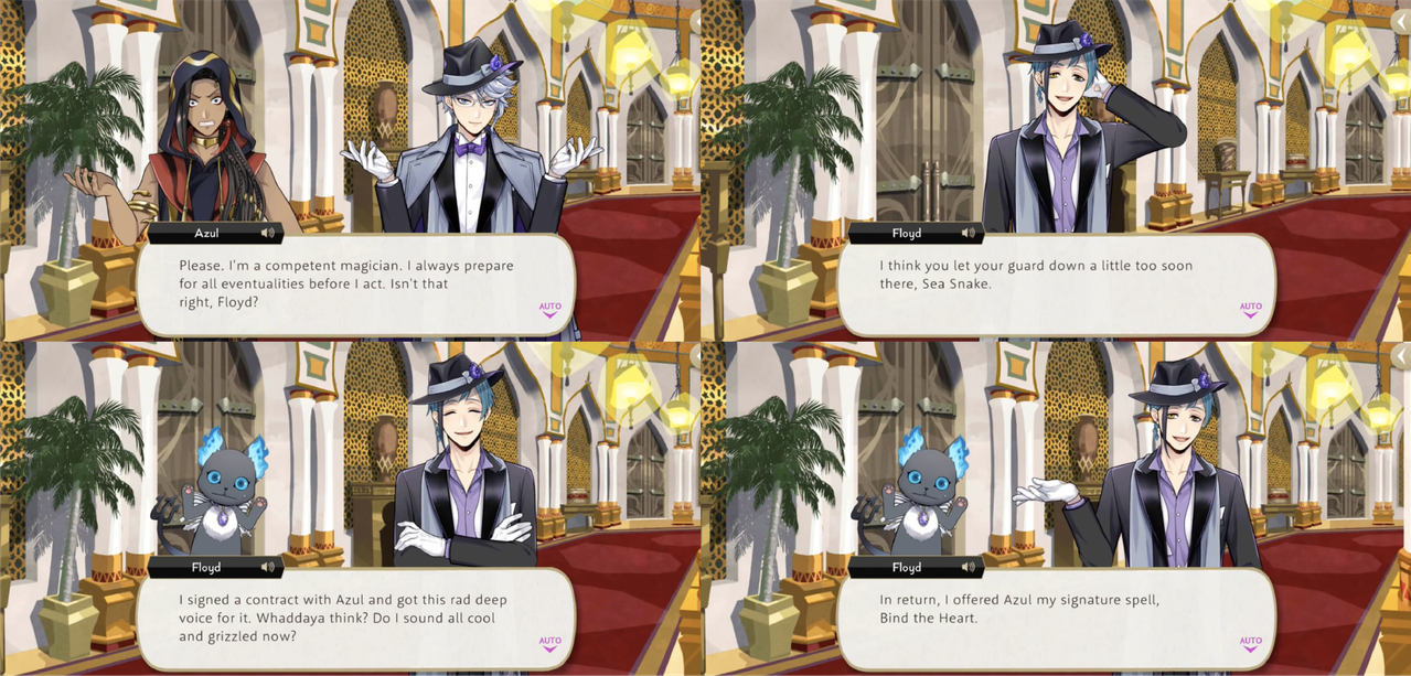 Azul uses his unique magic in Book 4, granting Floyd a deep voice in exchange for Floyd’s own unique magic, that he uses to thwart Jamil.