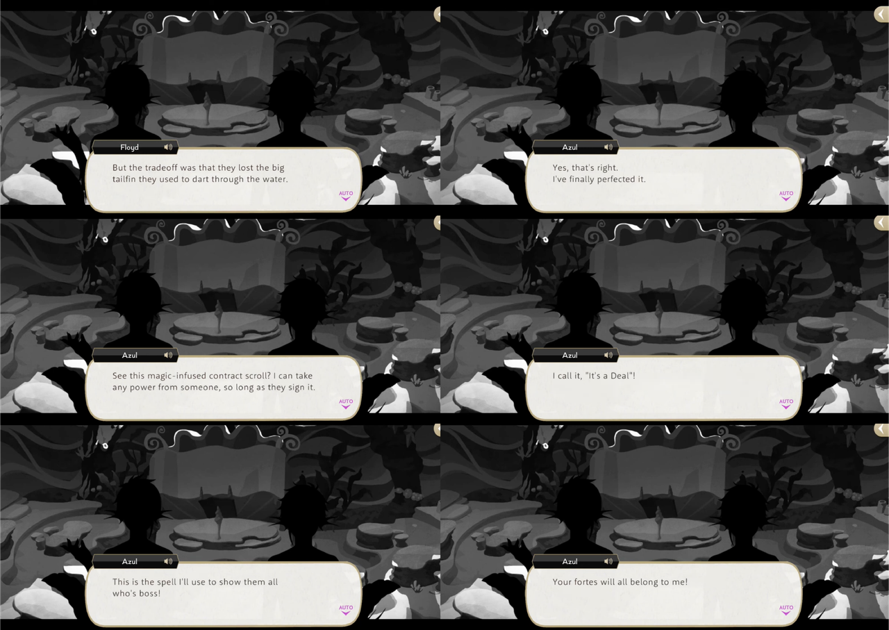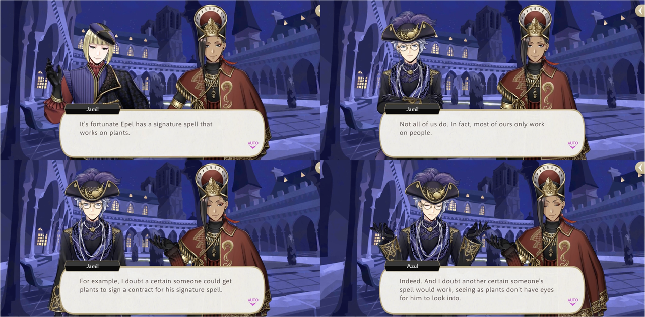 During Glorious Masquerade, Jamil teases Azul by saying, “I doubt a certain someone could get plants to sign a contract for his signature spell” in order for Azul to be able to use his UM on the firelotuses, but as we see in Book 3 Azul does not actually need anyone to sign anything at all: his UM can be used without his target’s consent. Whether or not this means that Azul could take “abilities” from things like plants if he so chose is maybe unclear.