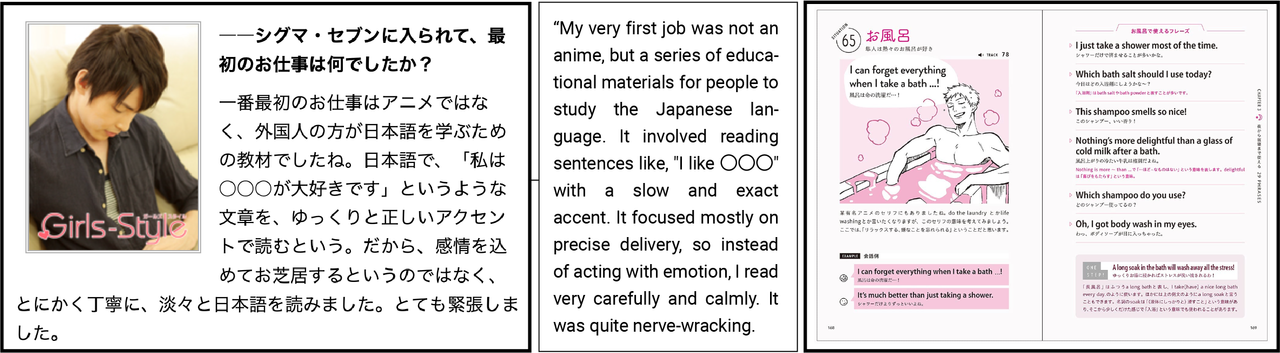 In an interview Tamaru says that he was the only new actor they accepted who had yet to have a lead role in any project. He says his first job was not voice acting, but for study materials, such as the 2019 English conversation study guide, “Handsome English Conversation Phrases”, for people studying English as a second language.