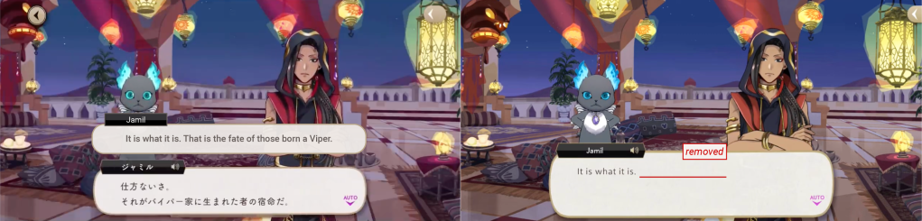 Original Jamil: …normal, huh. I suppose that concept is lost on me, since I’ve been a servant of the Asim house since I was born. Masters are masters, and servants are servants. And that will likely never change.