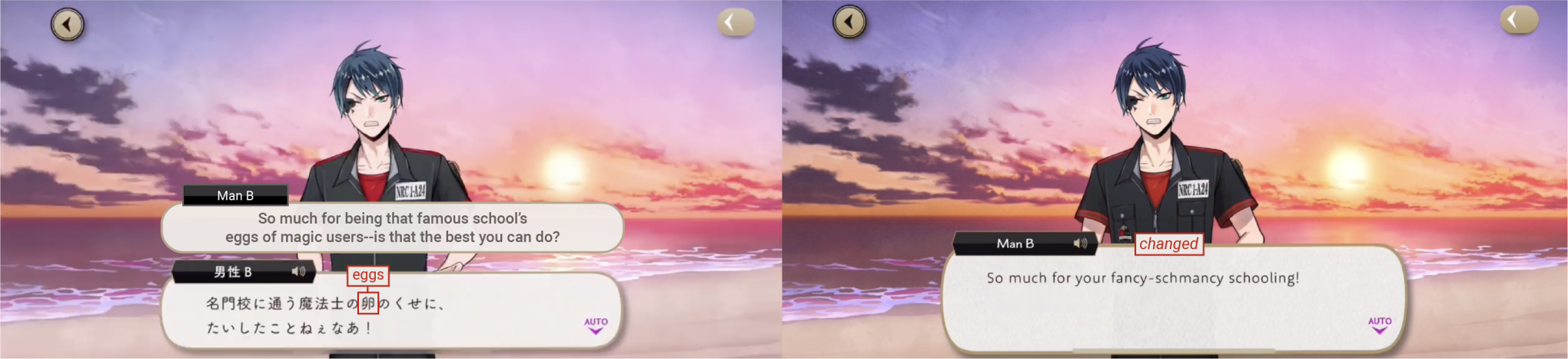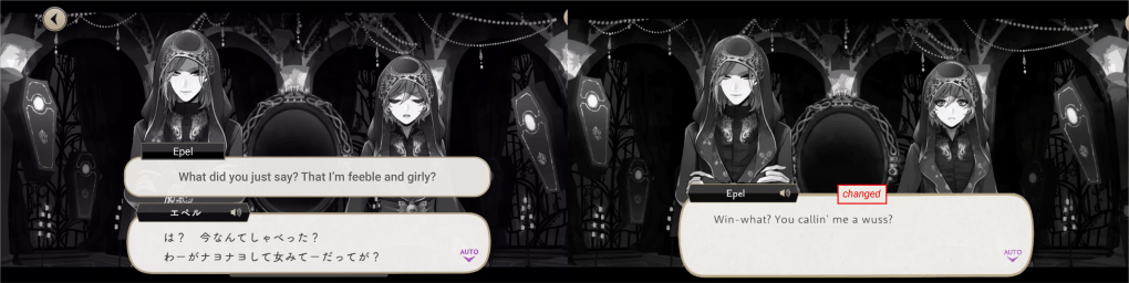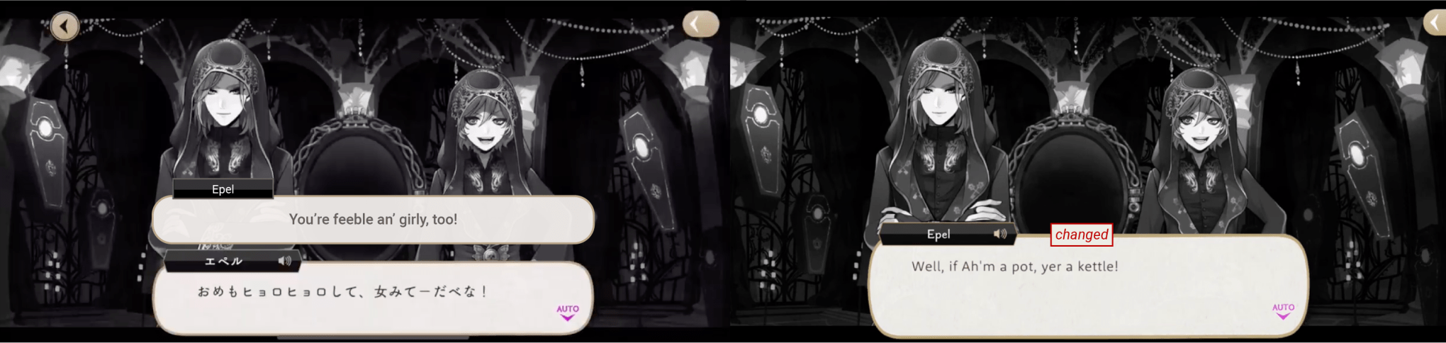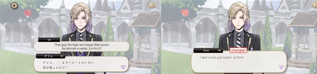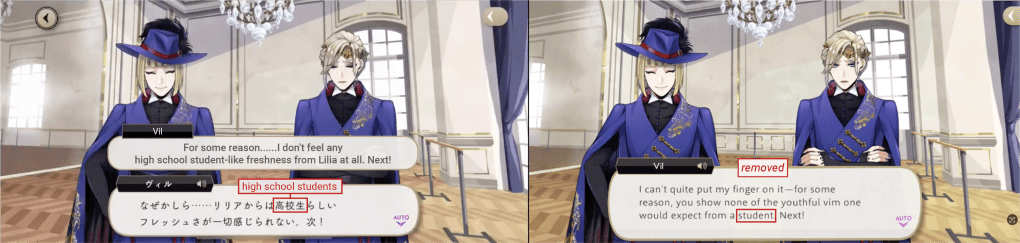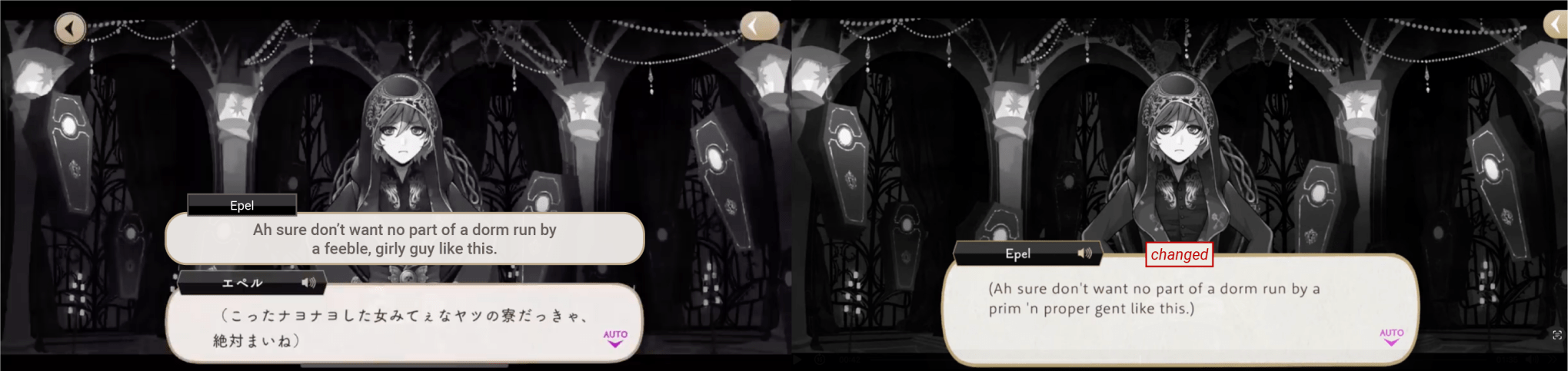 The original game included the characters’ auditioning with the official lyrics to “Piece of My World” on the screen, removed from EN.