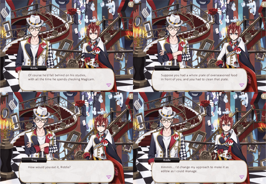 Instead Riddle leaves after a gentle warning and the Heartslabyul students react with “Turns out you can do whatever, so long as you’re one of Housewarden Riddle’s cronies”.