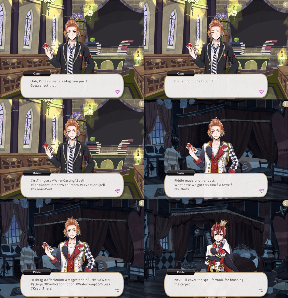 Ace tries to take credit for his role in helping Cater, but Riddle and Trey point out that, not only was that Cater’s original intention from the start, but he then used the “mishap” to enlist help from people like Ace himself and increase his Magicam follower count.