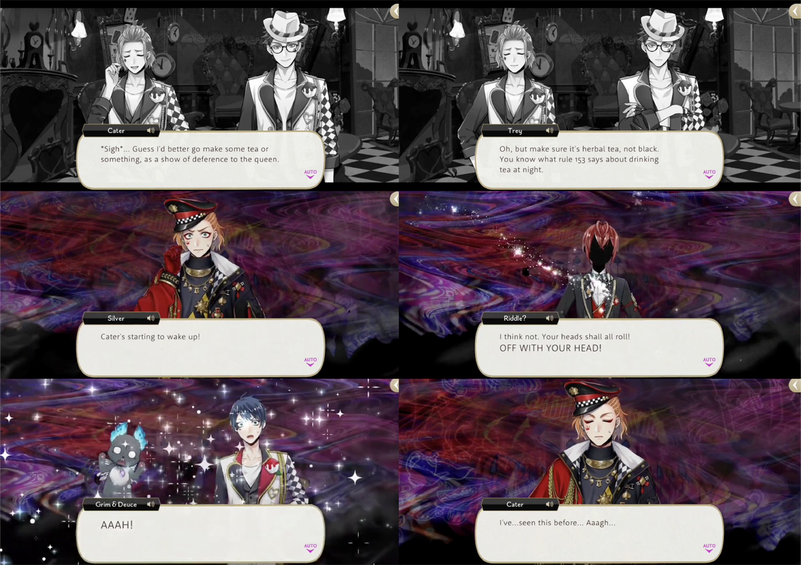 Dream-Riddle attacks Deuce and Grim with his unique magic and Cater wakes up, saving both of them with his unique magic.