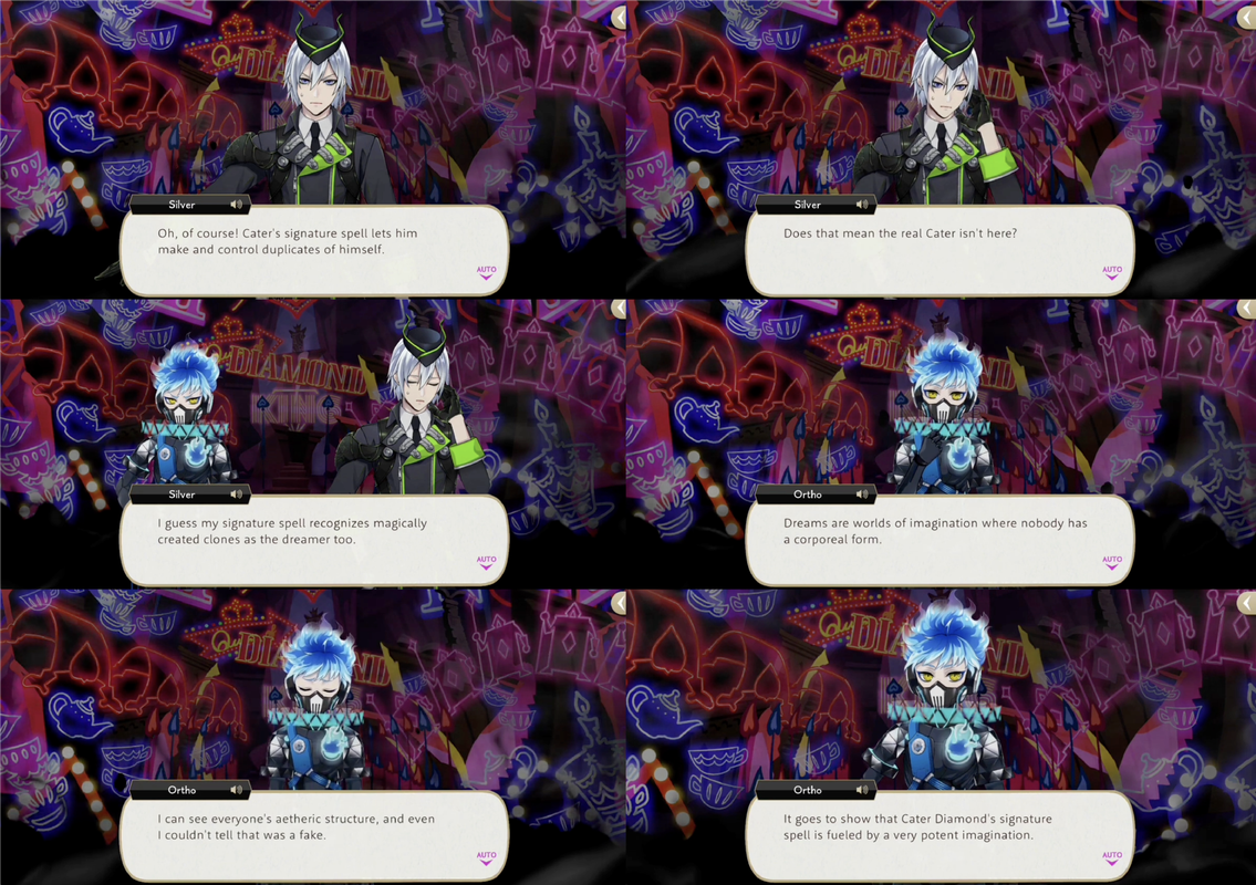 Ortho explains, “Dreams are worlds of imagination where nobody has a corporeal form. I can see everyone’s aetheric structure, and even I couldn’t tell that was a fake. It goes to show that Cater Diamond’s signature spell is fueled by a very potent imagination. Then again…maybe he views himself objectively even in his dreams?”