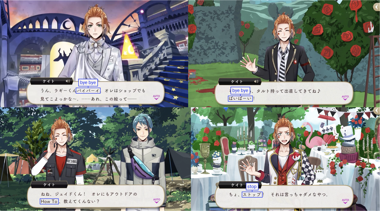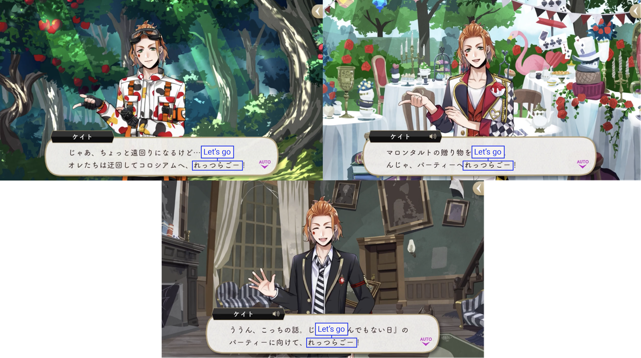 Cater is one of a few characters who will integrate English-language words into his dialogue, such as “Let’s go,” “stop,” “How to,” “bye-bye” and “OK.”