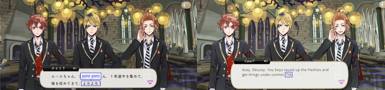 He will also say “yah-ho,” as a kind of playful, casual greeting, and “yoro yoro,” a playful, casual, shortened version of the word “yoroshiku,” which doesn’t really have an English-language equivalent but Twst EN localizes as “TIA” (thanks in advance) in Book 7.