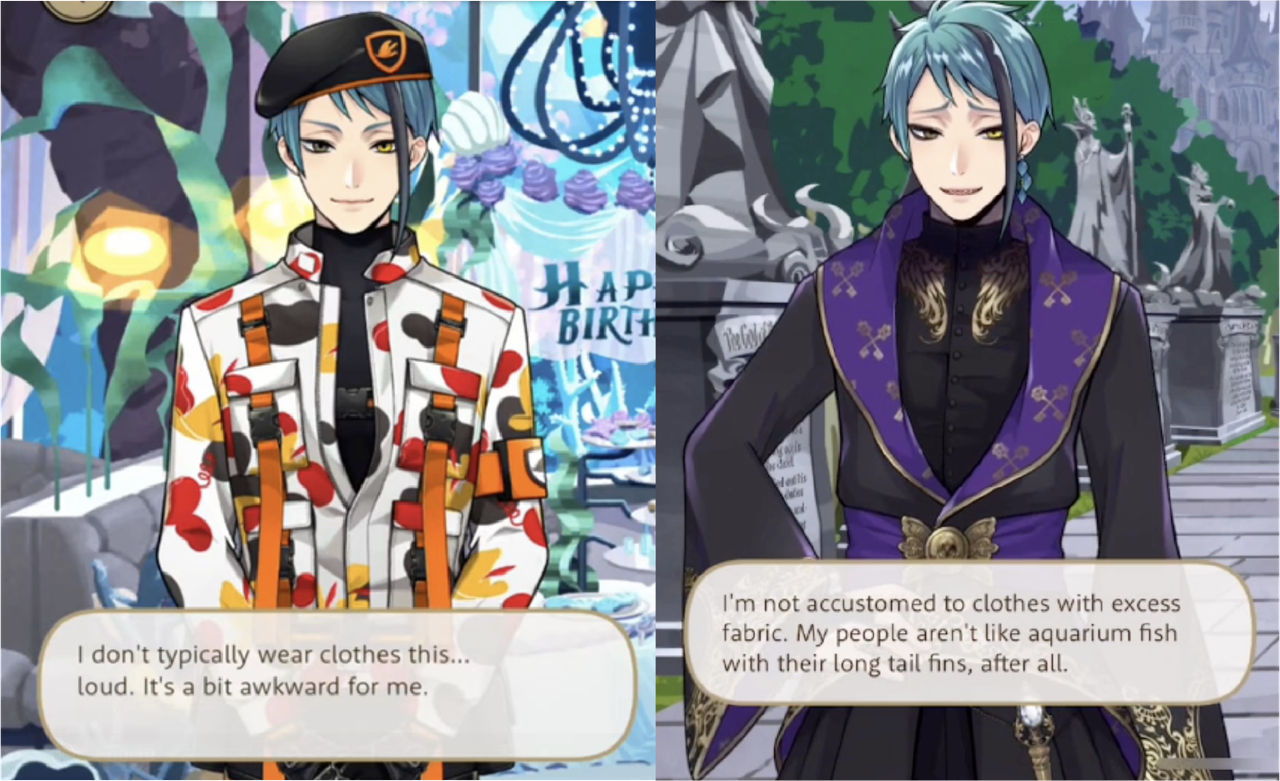 Jade says that his Beanfest outfit is “a bit awkward for (him),” as, “I don’t typically wear clothes this…loud,” and seems to like his Eternity Float outfit, saying, “I love all of it, from head to toe.”