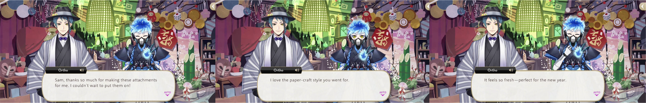 It seems that Sam may have both designed and built the attachments of Ortho’s New Year look, and Ortho says he loves “the paper-craft style.”
