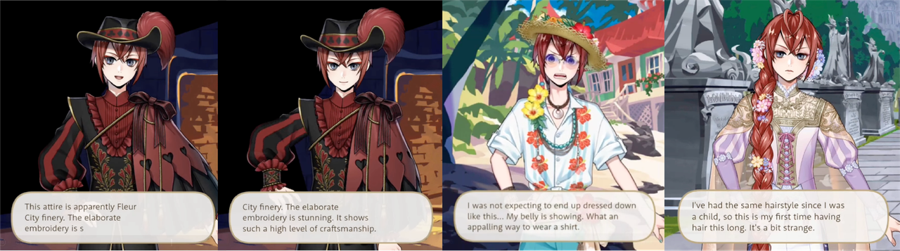 Riddle has a voices line complimenting the elaborate embroidery of his masquerade outfit, and may have an eye for quality. He describes his belly shirt of the Stitch event as “an appalling way to wear a shirt,” so such a style is possibly not a part of his usual wardrobe.