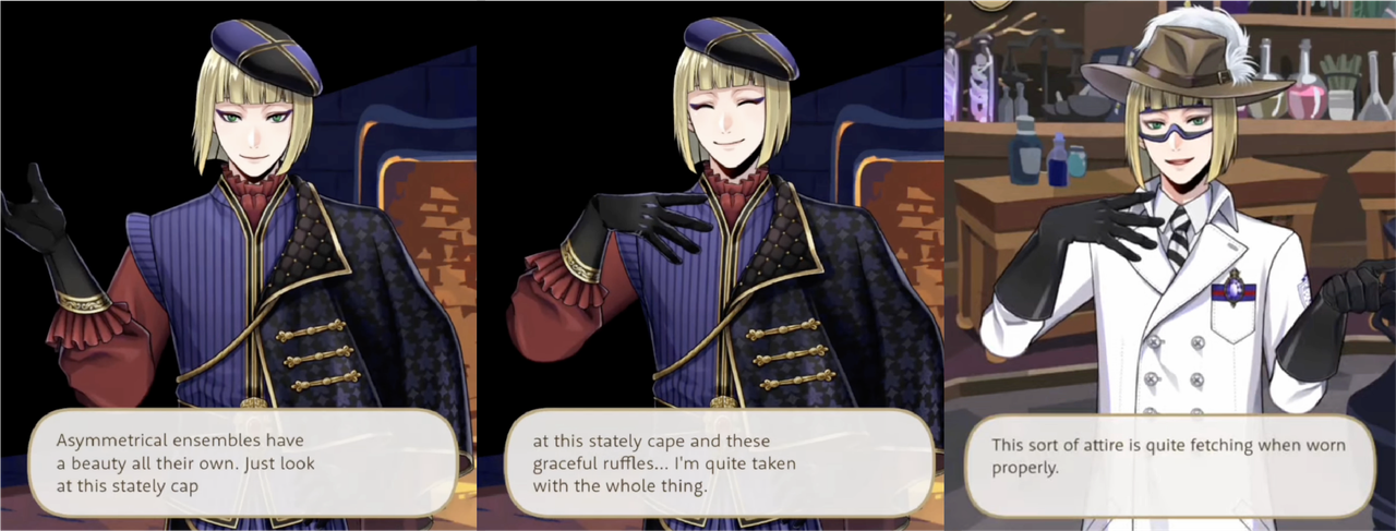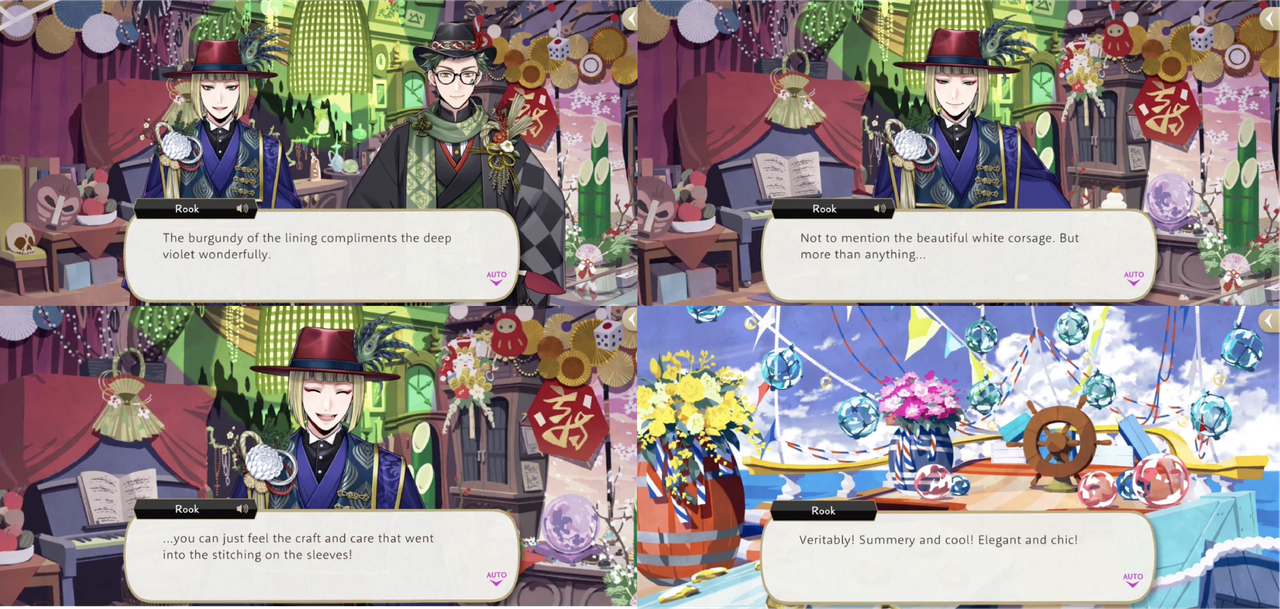 Rook says that he has since developed an appreciation for personal care and he is complimentary of his outfits for Glorious Masquerade, New Year, Port Fest, and the Eternity Float event.