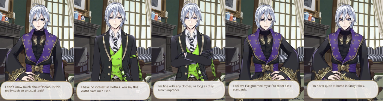 Silver says he likes how his Fairy Gala outfit is “both fancy and easy to move in,” and, “If a fight broke out, the hard heels would make useful weapons.”