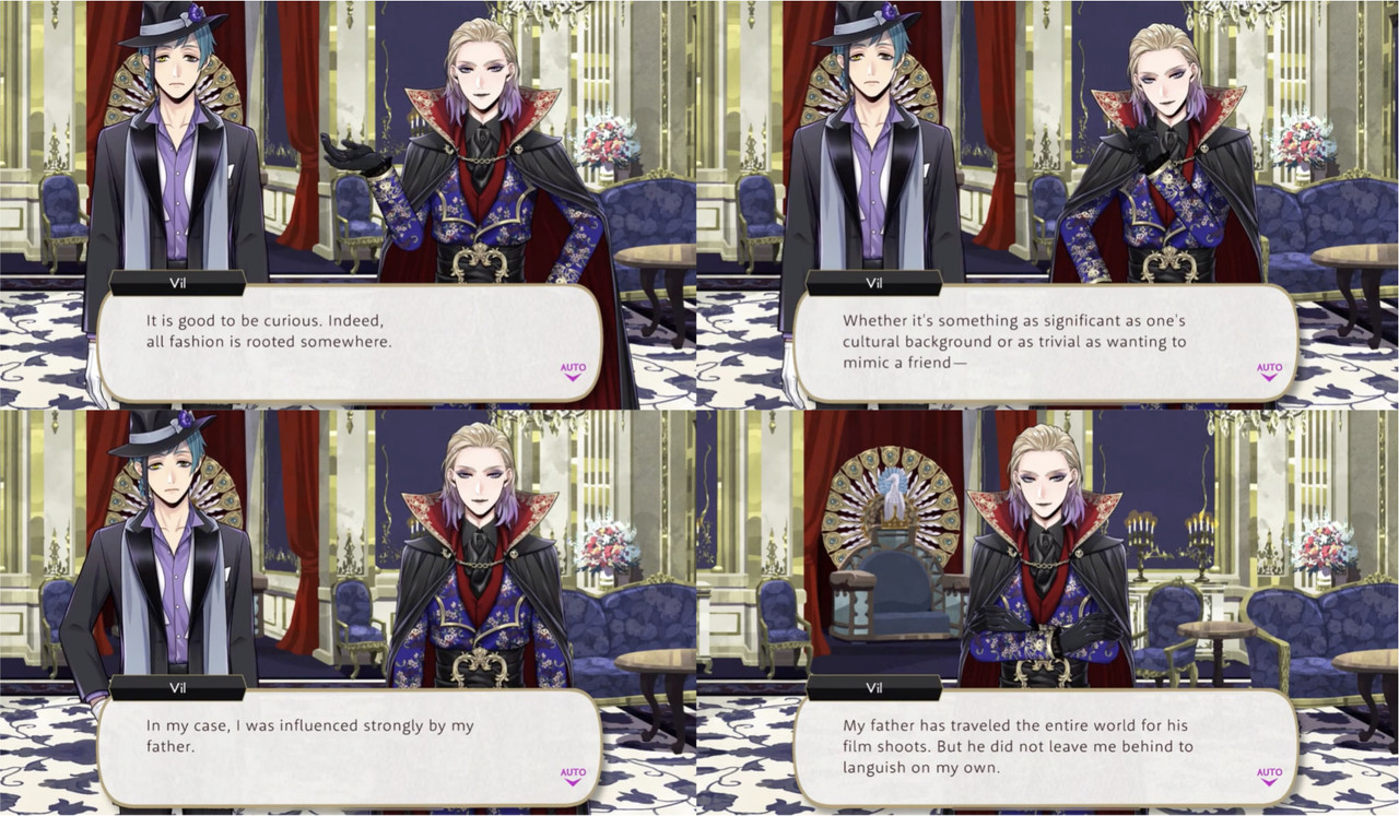 While it has been hinted that characters like Cater and Floyd might be partial to brand-name products, Vil says that quality is more important and he is happy to wear generic items of top-notch craftsmanship and materials.