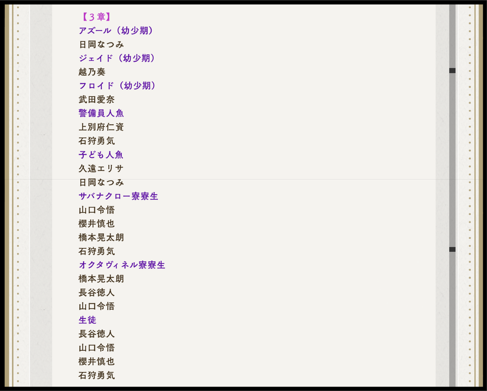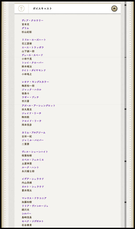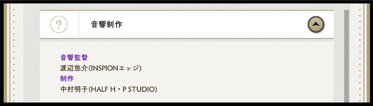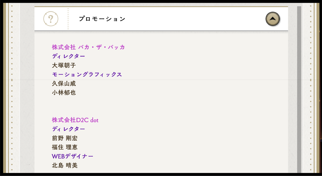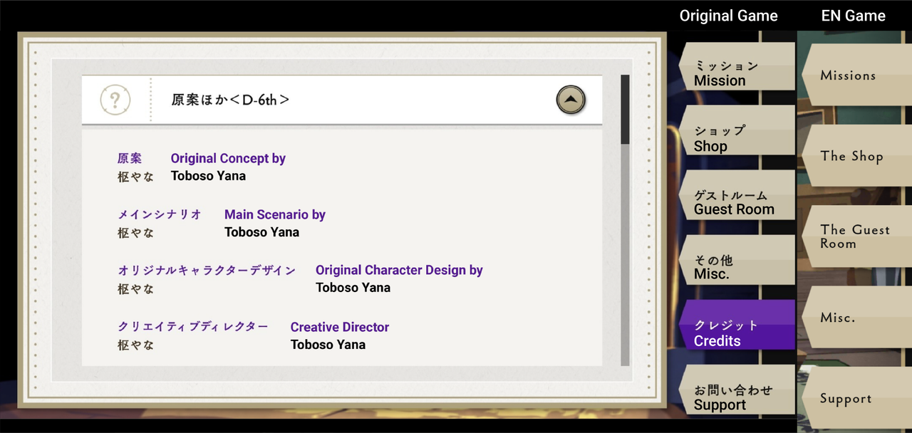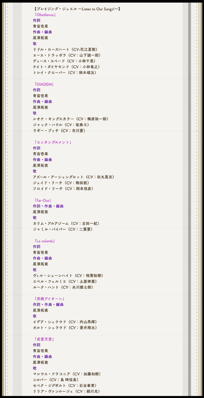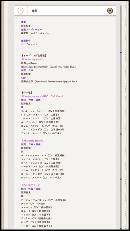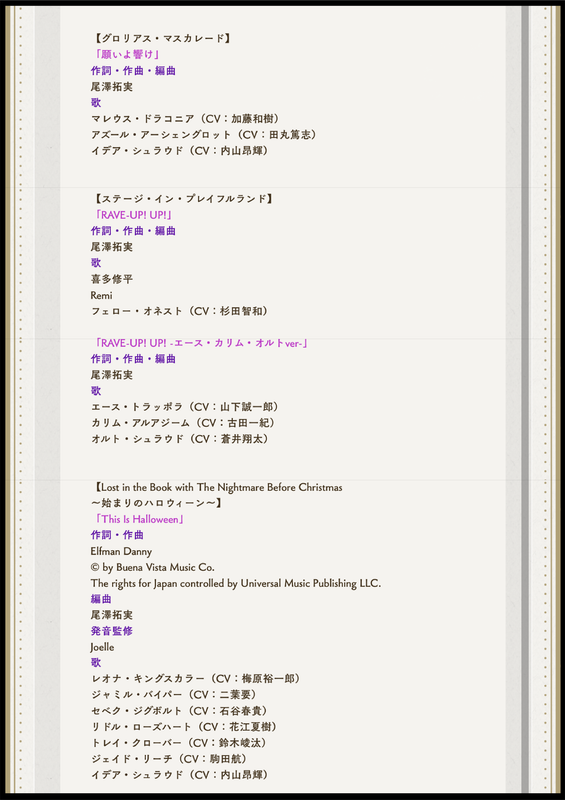 In the original Twisted Wonderland app there is a “Credits” submenu under the “Help” section of the settings, which includes a list of every person/creative team associated with creation of the game, music and promotional animations.