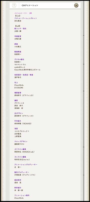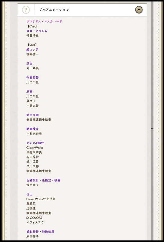 Finishing: CloverWorks, Yamaguchi Mai, Watanabe Yuuko, Hara Kyouko, Nagai Ayaka, Edagawa Akane, Igarashi Rumi, Torigoe Shiori, Shimada Kousuke, Okuhara Kaoru