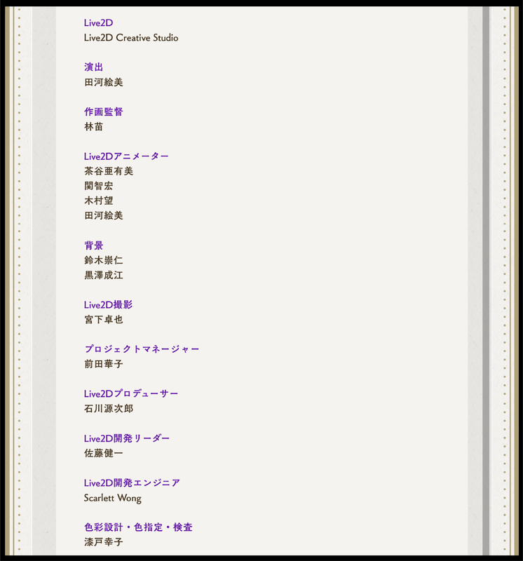 Live2D Animators: Chaya Ayumi, Seki Tomohiro, Kimura Nozomi, Tagawa Emi