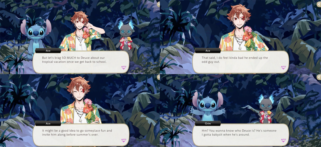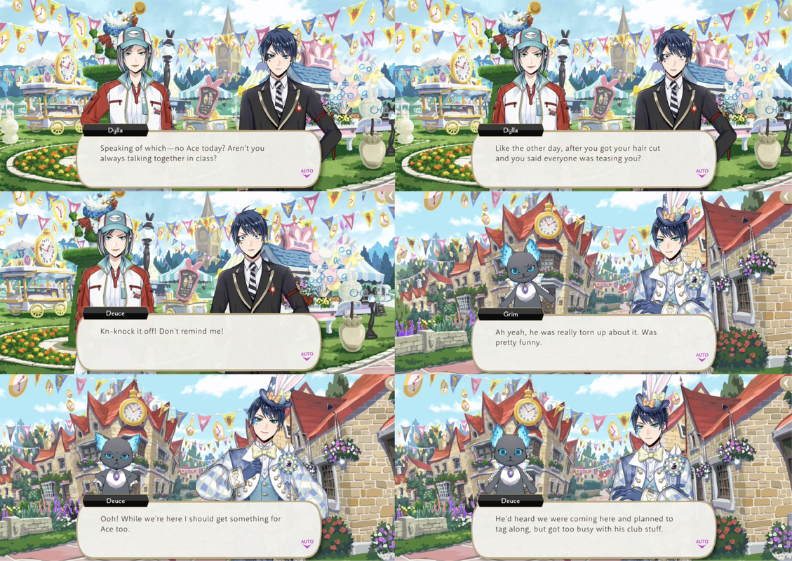 Grim says that Ace was “really torn up” about not being able to go with them and Deuce decides that, if he gets a present for Ace and tells him how fun the festival was, “he’ll feel even worse!”