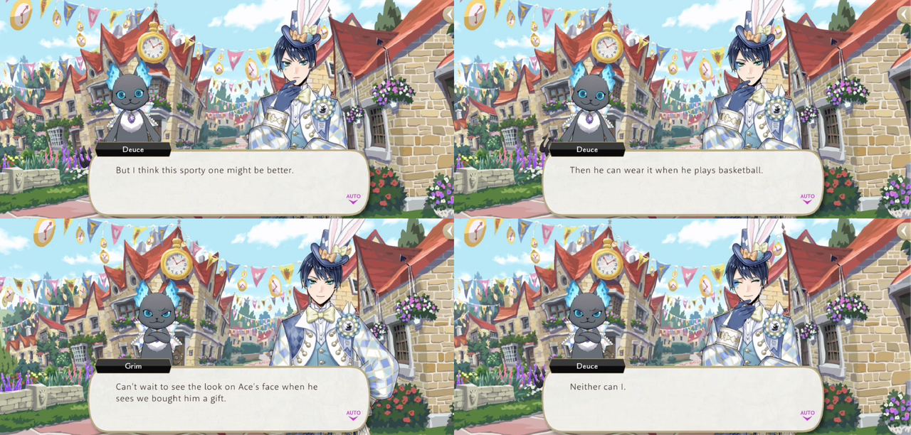 Deuce also gets caramels for Ace as a gift from Fleur City, while Ace gets Deuce, the prefect and Grim matching hats during Tapis Rouge.