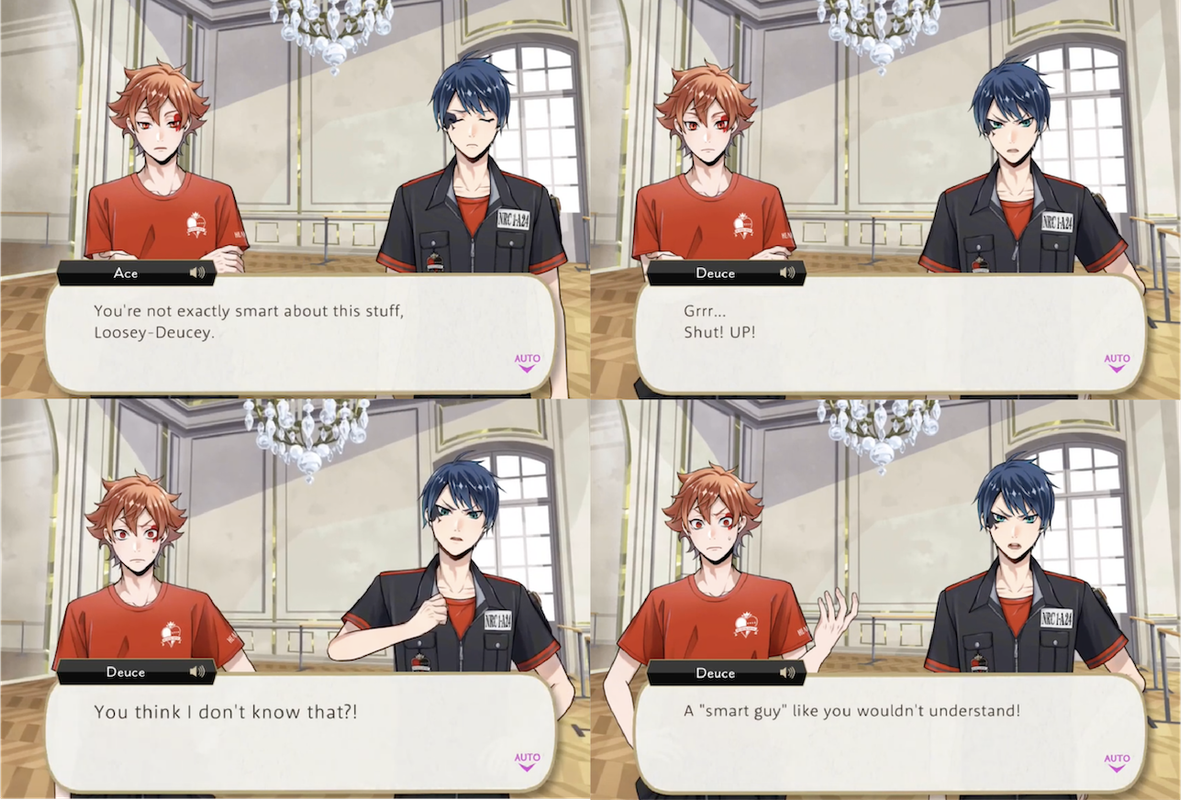 (Ace seems to agree with this, saying, “Deuce is like a boar who charges headfirst into everything. His internal brakes are busted.I feel like he sees me as a rival. I’d wipe the floor with him if he ever wanted to throw down, of course.”)